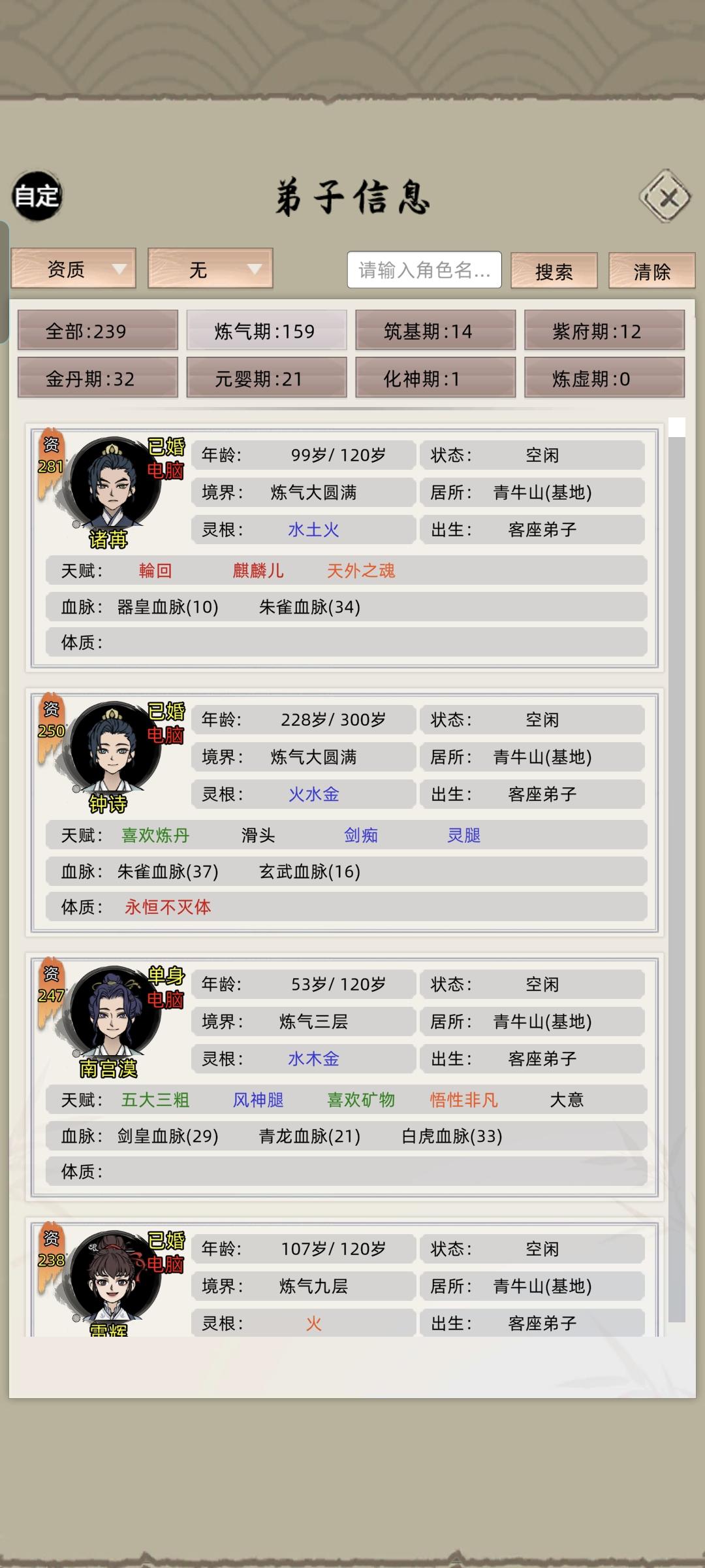 现在修仙模式难度电脑攻击频率太低好没劲!!现在灵石太容易获得,,高阶功法太获取太容易!!可以添加血色禁地 魔海深渊 启源沙漠每隔几百年自动开启,不同等级副本需要不同借位的灵石开启,里面获得特殊功法只能参加者学习!!电脑概率参加!!等等!!这样玩法的就长久!!!不然没压力后期太无聊太浮躁,,一人打一族。没劲#TapTap 游戏天赋测试