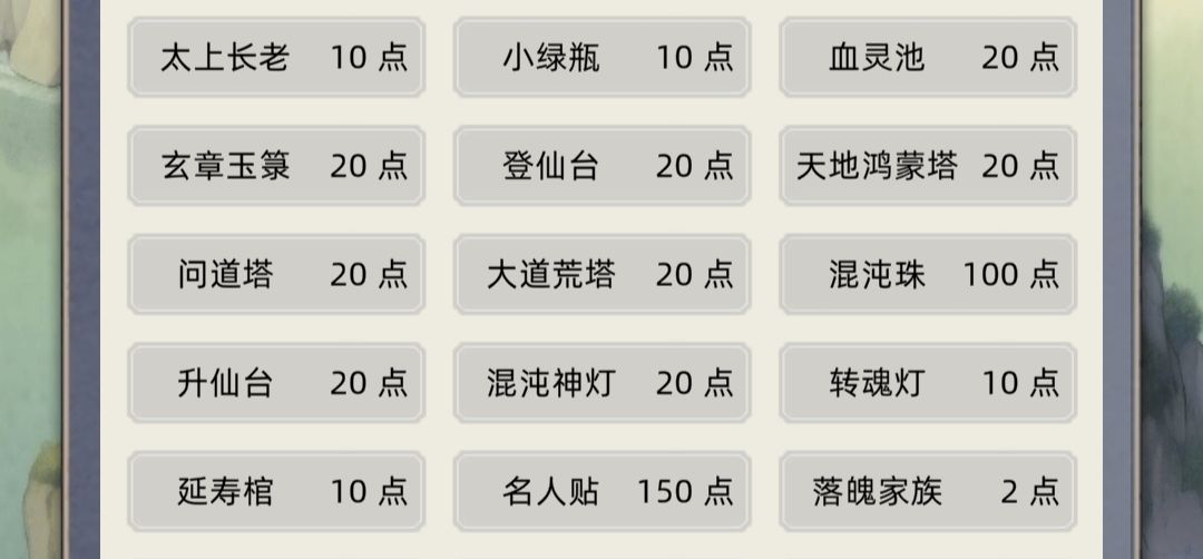 众所周知,祖宗祠堂可以带三个物品去其他存档。 下面,我以个人的习惯分析带什么东西比较好。 三个空位,我一般两个固定放的就是六阶的混沌珠和六阶的大道荒塔。 如果运气好这局有一个绝品道体丹的话,就把道体丹放进去。 六阶混沌珠拆雾可以得十几个仙道混沌令,可以很轻松的刷一个化神丹单方出来。 化神丹单方再加上其他刷出来的一些东西,一起卖了差不多你够稳定两亿灵石开局。 前期直接发家致富,实现灵石自由。 大道荒