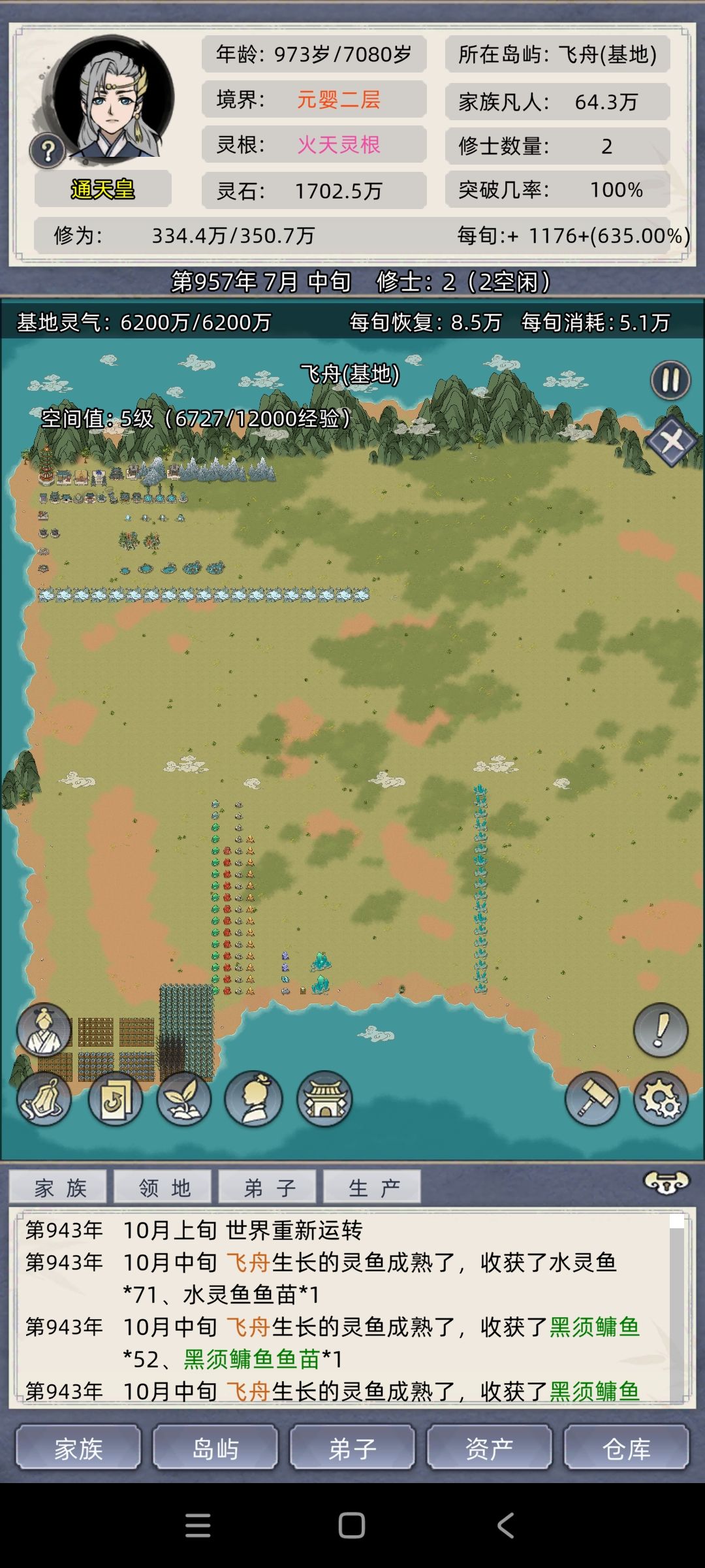 这个版本,开局不要种田炼丹,太慢而且性价比太低,开局优先把必要建筑建满,然后把交易区洞府拉满,优先把交易区升满,其次洞府,记得小人全部驻扎进去,大概30年之后,都能升到4-5级,每年50-70w灵石是有的,50年之后交易区满级,之后每年有200-300w前期够用,然后飞快游走找那种小型中型岛屿掠夺吞噬,前期就九个鱼塘养鱼,黑鱼绿鱼蓝鱼,商店和野外掠夺的材料够养鱼就九个全养上,把小人御兽高的安排并给