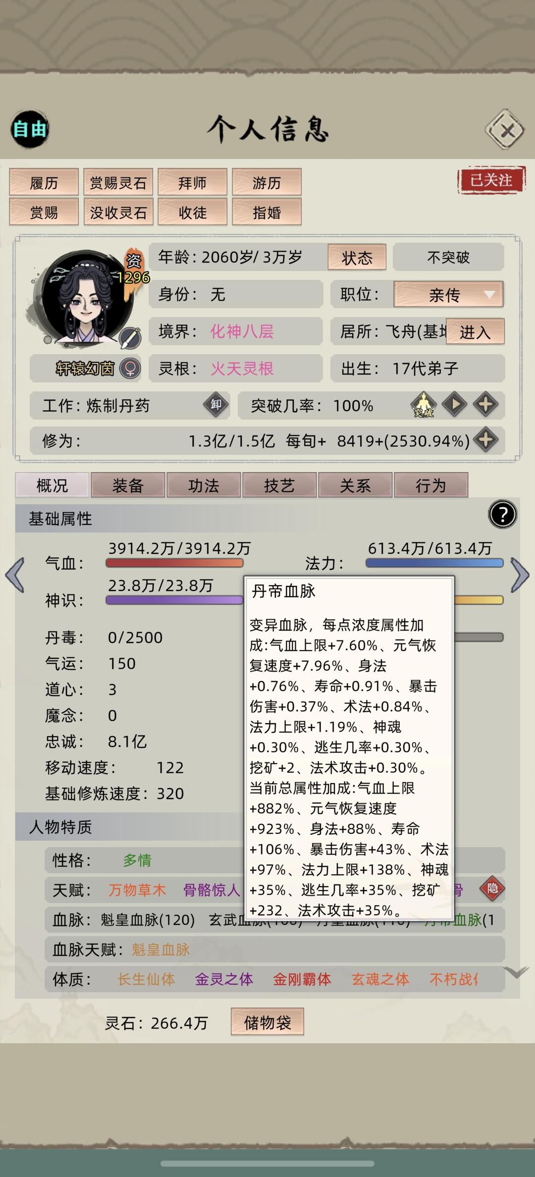 很久没玩了,玩的自由模式,开局选一个紫府长老,然后找到名人的岛屿,等他结婚后把他所在的岛打下来,然后俘虏他老婆,等他老婆生孩子。 本来叶天帝老婆也成功逮到了,被我派去打荒天帝噶了。 从数据上看荒天帝和王麻子后代结合战斗天赋和战斗属性比名人原体强,可惜叶天帝老婆被我派去攻岛没了。 开局选个紫府长老抓名人老婆,可以快速搞到名人的体质与血脉。 #游戏杂谈 #修仙家族模拟器 #攻略