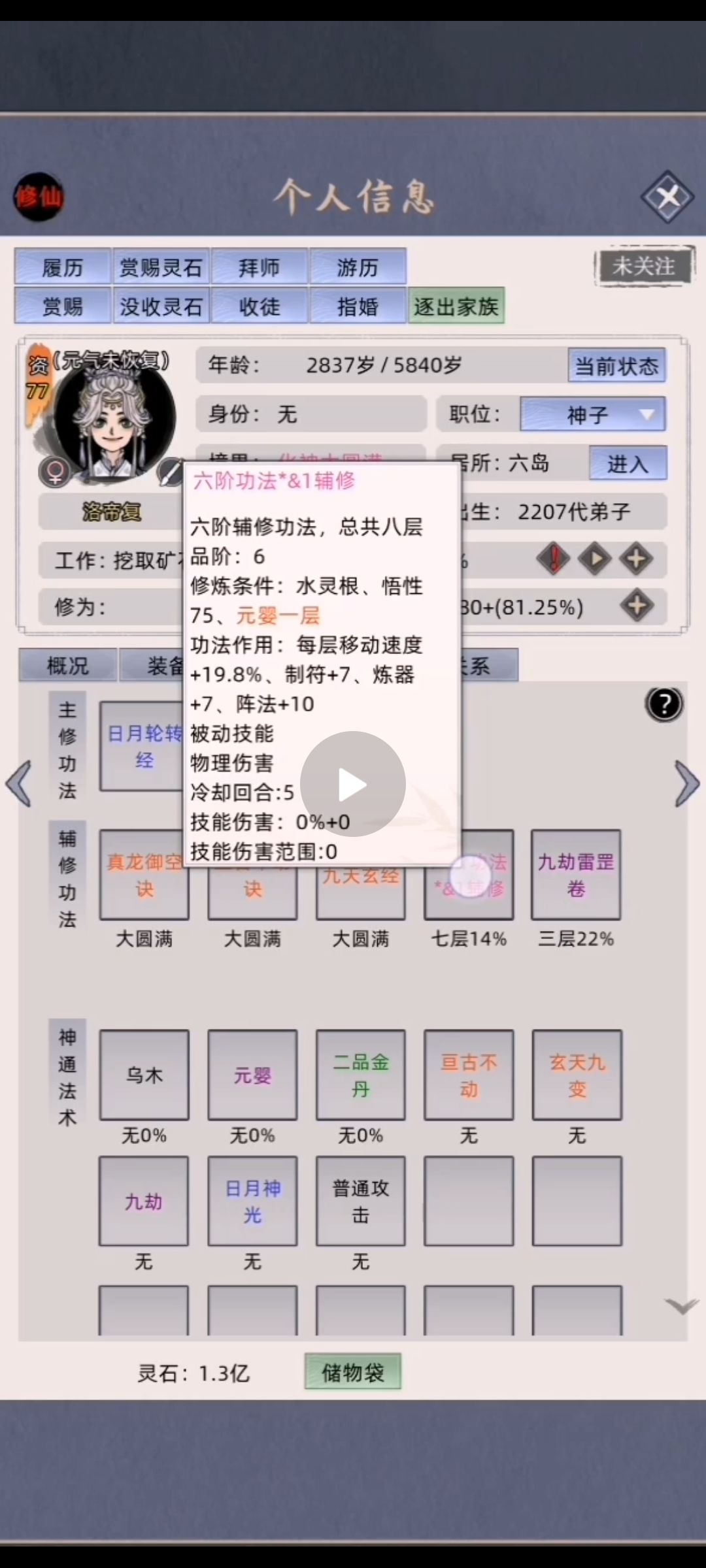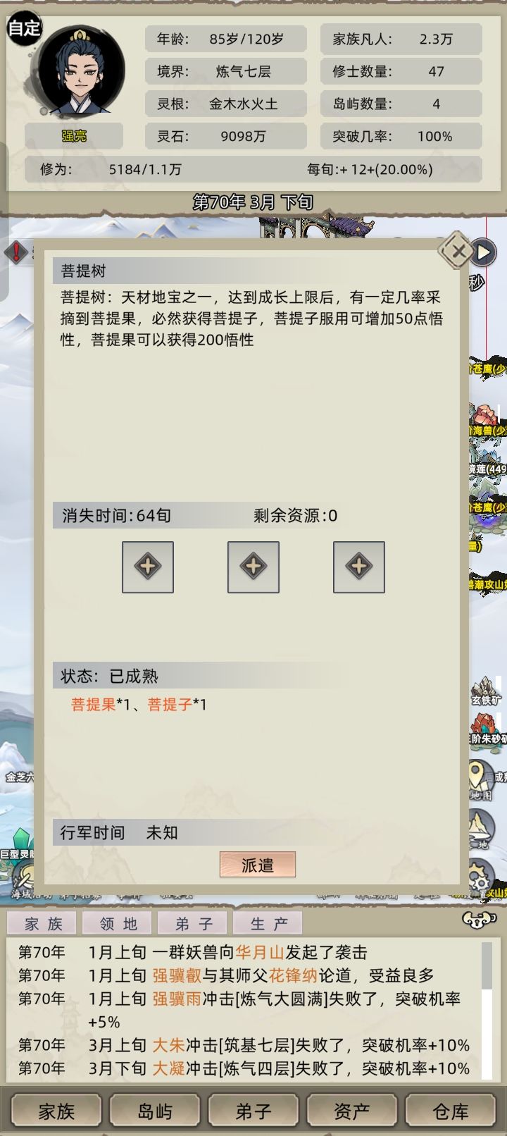 目标:老祖剑道飞升,全族叠100剑道飞升、100道心飞升,血脉配神龙、真龙、巨魔,尽量减少各种事件使手机卡顿降低) 一、名词解释 剑道飞升 剑道大于700(吃鱼加成不计入)可剑道飞升,飞升后所在岛弟子(可游历可探索)加50剑道,5%修炼速度,最多100层; 道心飞升#游戏攻略 道心大于50可道心飞升,飞升后所在岛弟子(可游历可探索)加10道心,5%修炼速度,最多100层; 二、开局选择 1、老祖