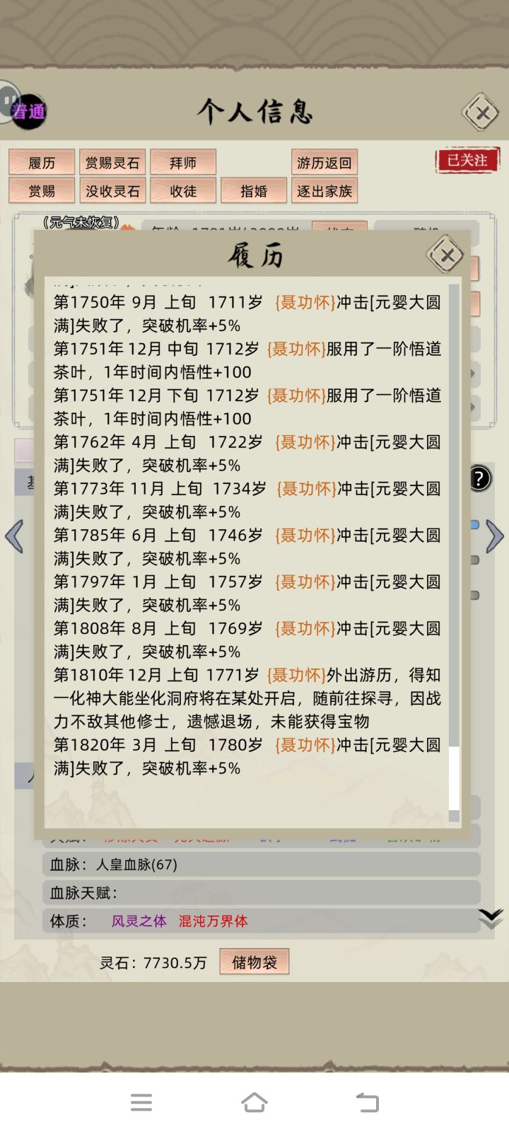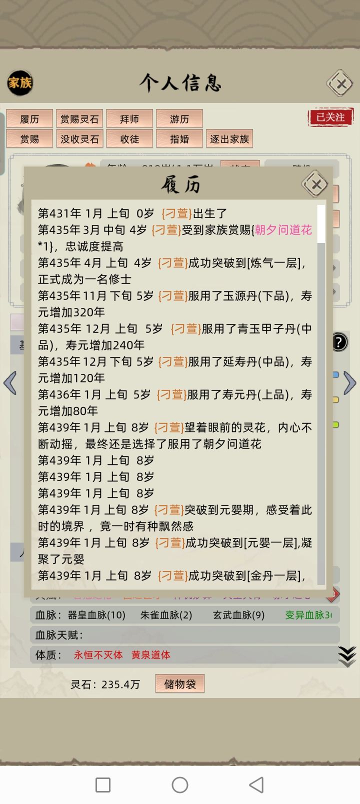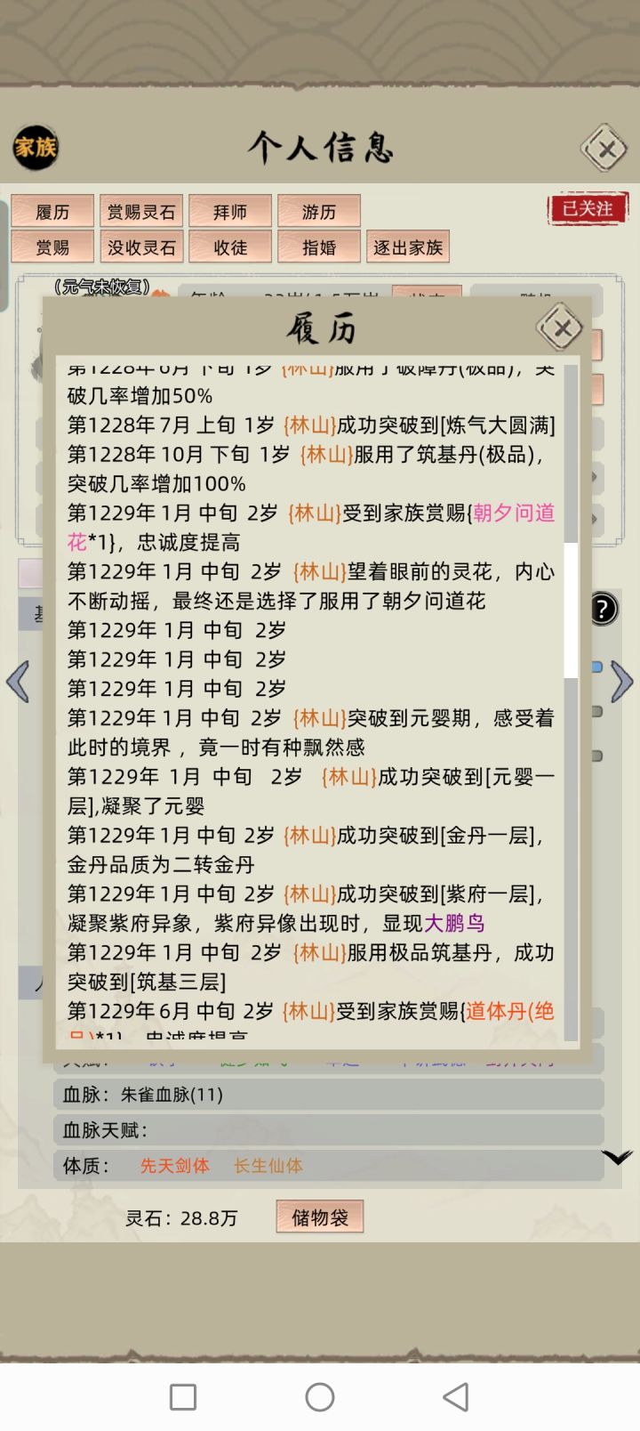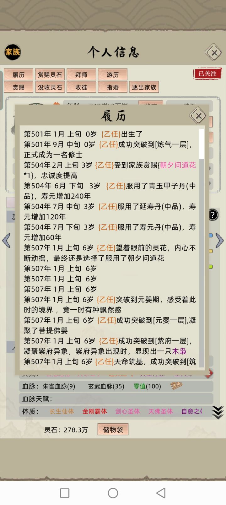 21年这游戏首次发布就深深迷恋上了,整夜整夜不睡觉,就为了看到人物突破化神,统一全岛。哪怕是上班也偷偷摸鱼玩,去泡温泉也一直打开sl品质,这5年时间换了很多环境,经历很多事,也失去令人意难平的人,唯一不变的是对这游戏的初心和#修仙家族模拟器