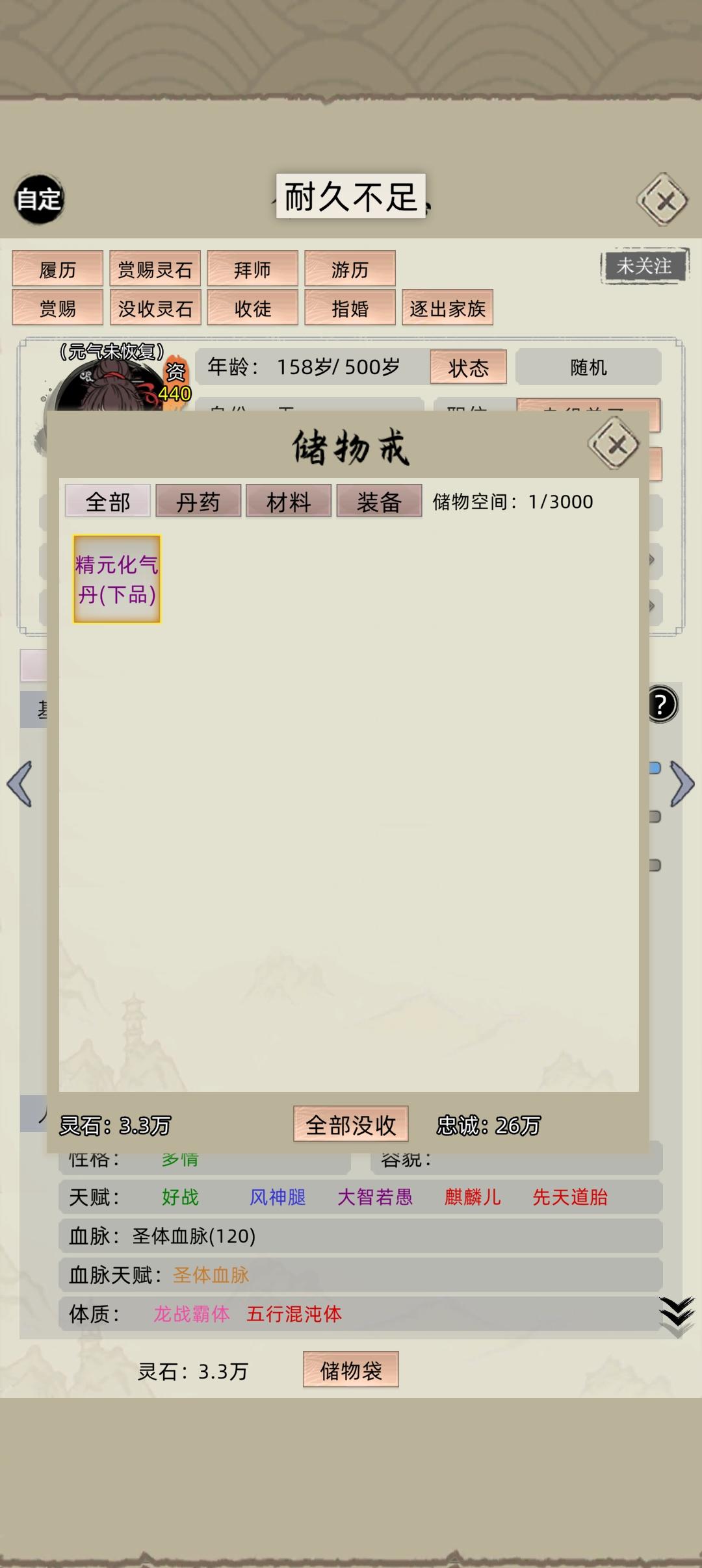 众所周知(之前论坛有人发过)变异血脉的属性效果取决于修士面板属性的占比。举个栗子:就是物攻高的修士觉醒血脉,更容易出高物攻天赋,先手高的同上。有人集齐三名人血脉加十多个红色体质、天赋,试图用一个六边形战士觉醒一个六边形天赋。但是人不能既要又要,什么都想要的后果就是,你会得到一个平平无奇的血脉,而这个血脉,还是你数十次回溯时间所能得到的最好结果。这对战斗修士或许影响不大,但对生活职业的修士,是