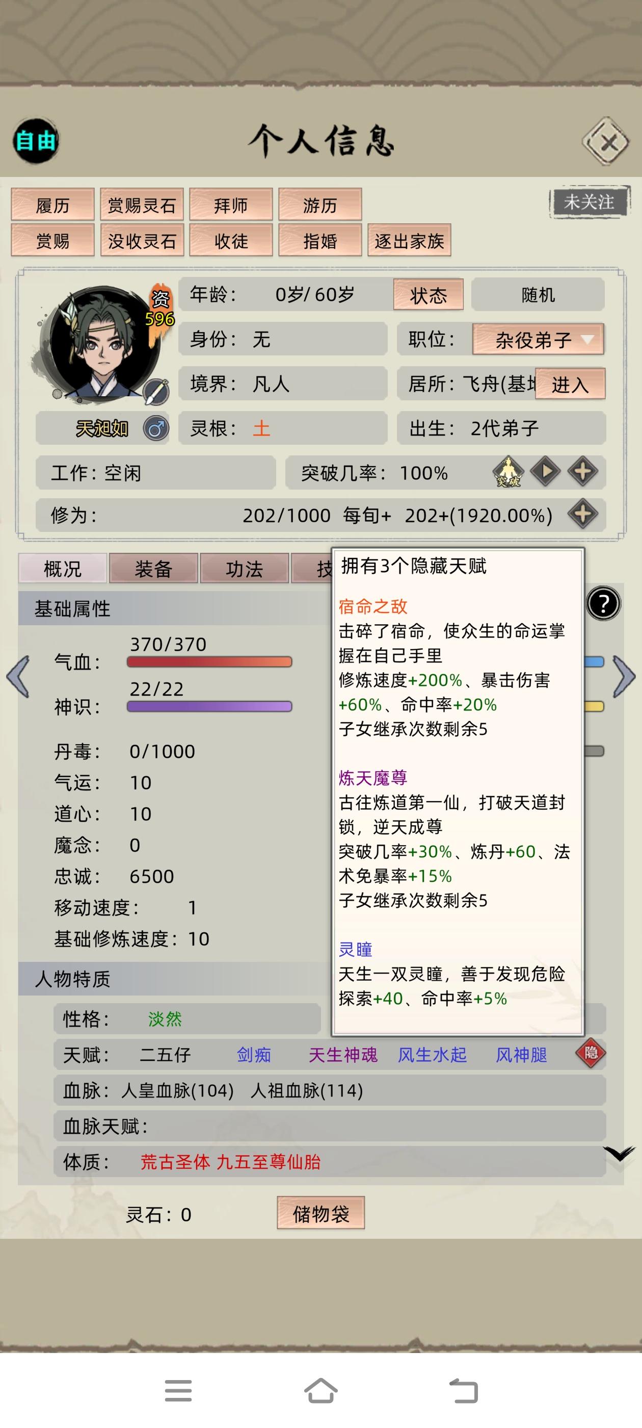 众所周知(之前论坛有人发过)变异血脉的属性效果取决于修士面板属性的占比。举个栗子:就是物攻高的修士觉醒血脉,更容易出高物攻天赋,先手高的同上。有人集齐三名人血脉加十多个红色体质、天赋,试图用一个六边形战士觉醒一个六边形天赋。但是人不能既要又要,什么都想要的后果就是,你会得到一个平平无奇的血脉,而这个血脉,还是你数十次回溯时间所能得到的最好结果。这对战斗修士或许影响不大,但对生活职业的修士,是