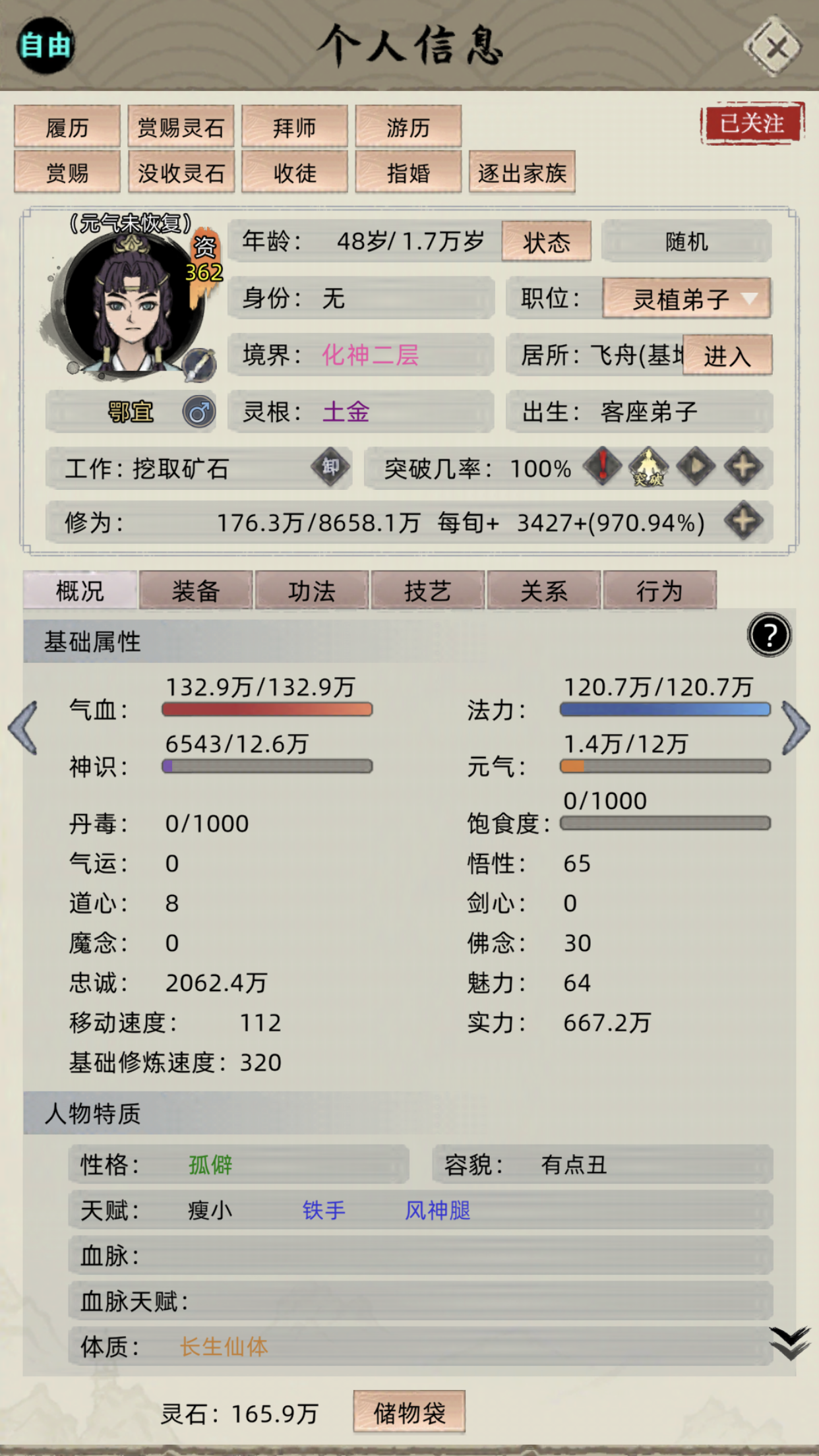 众所周知(之前论坛有人发过)变异血脉的属性效果取决于修士面板属性的占比。举个栗子:就是物攻高的修士觉醒血脉,更容易出高物攻天赋,先手高的同上。有人集齐三名人血脉加十多个红色体质、天赋,试图用一个六边形战士觉醒一个六边形天赋。但是人不能既要又要,什么都想要的后果就是,你会得到一个平平无奇的血脉,而这个血脉,还是你数十次回溯时间所能得到的最好结果。这对战斗修士或许影响不大,但对生活职业的修士,是