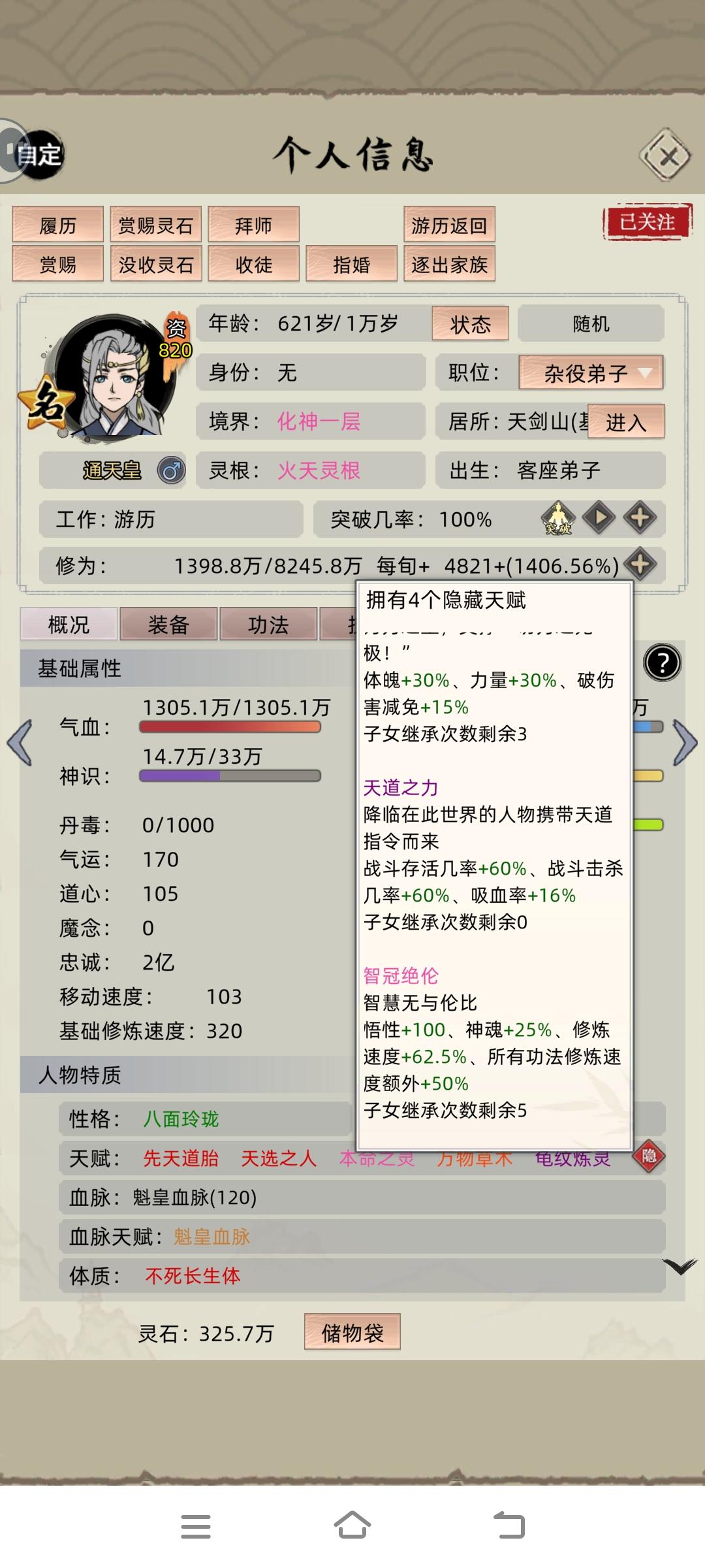 这是怎么回事?我的通天皇名人贴天赋咋没了😰,我刚把他放出去游历,过来一会说吃了奇异果实,生成了智冠绝伦天赋后,我存了个档,然后跨年时就跑了,回档就发现名人贴没了