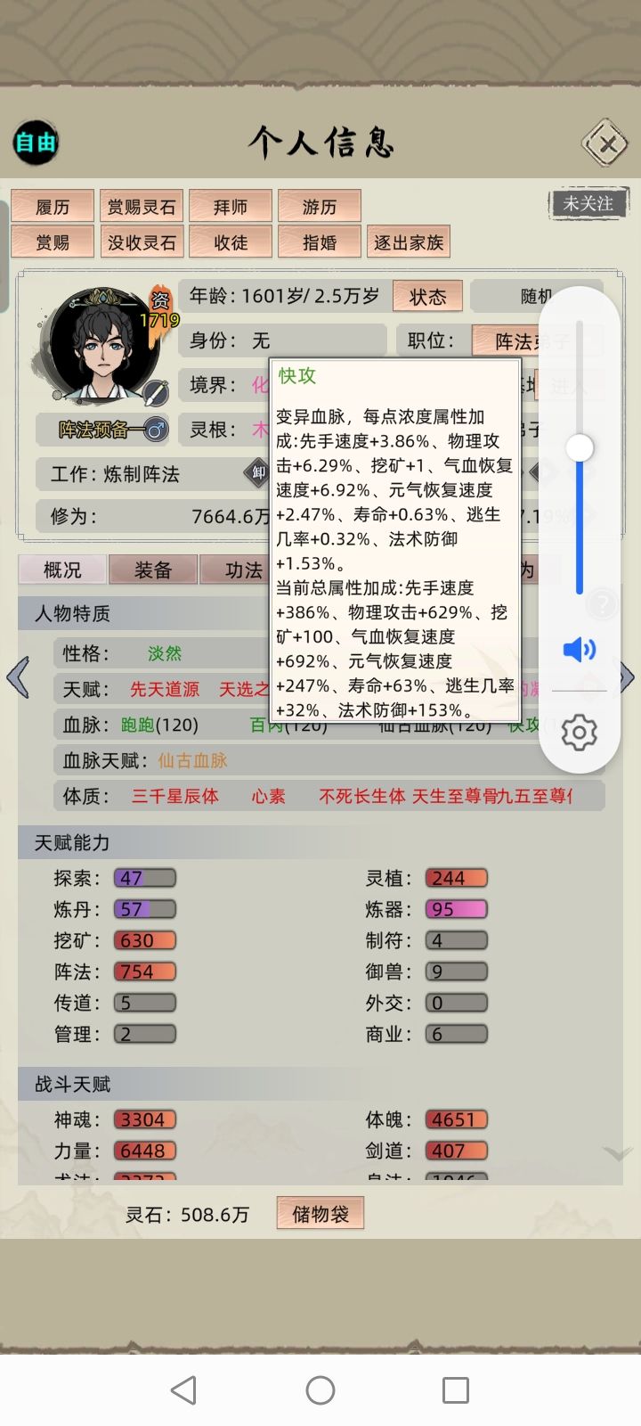 众所周知(之前论坛有人发过)变异血脉的属性效果取决于修士面板属性的占比。举个栗子:就是物攻高的修士觉醒血脉,更容易出高物攻天赋,先手高的同上。有人集齐三名人血脉加十多个红色体质、天赋,试图用一个六边形战士觉醒一个六边形天赋。但是人不能既要又要,什么都想要的后果就是,你会得到一个平平无奇的血脉,而这个血脉,还是你数十次回溯时间所能得到的最好结果。这对战斗修士或许影响不大,但对生活职业的修士,是