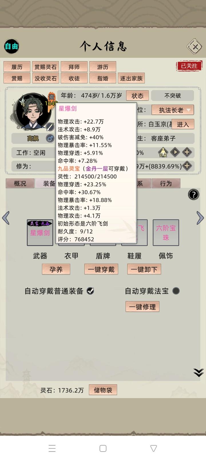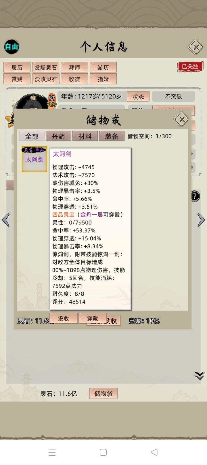 李青侯到手,血脉就收集完了,麒麟,巨魔,鲲鹏,3血脉收集完成。剩下的就是配体质了,不过也好配,毕竟全部名人都抓过来了。这个档很顺利,开局遇到朝夕问道花,直接老祖化神2了,100多年把全部名人都抓过来了。要不是升级升仙台没材料(拿仙道升仙令),耽误点时间,早配好了。算是最顺利的一个档。