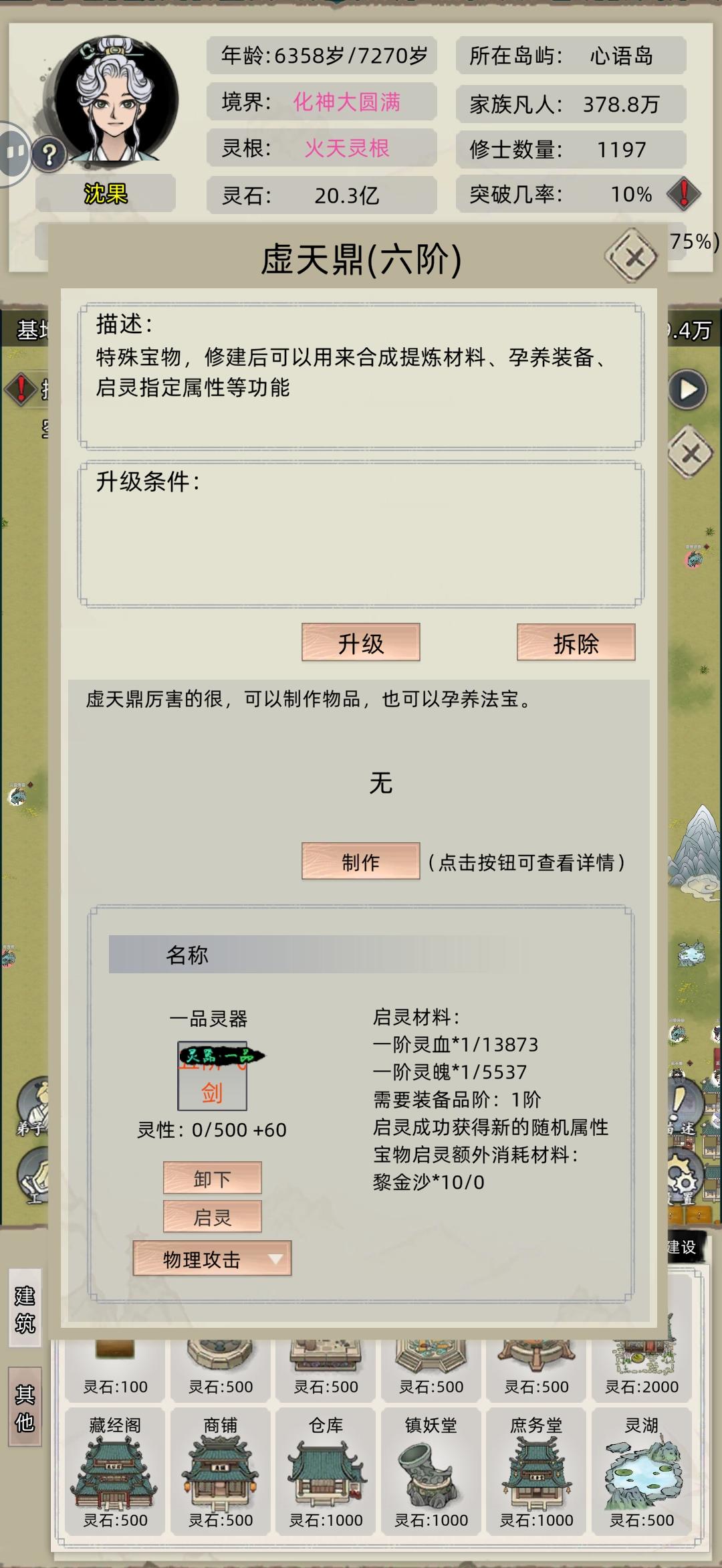 #修仙家族模拟器 #游戏攻略 自由模式,乱星海全化神全巨岛,150岛,人机全拉满,500分开局,祠堂传换灵丹,绝品极品丹各1颗。老祖选女的,天赋废物,宝物拿血灵池,暖玉床,虚天鼎,富饶家族和飞舟,有多的看着选。 进入游戏,直接暂停,把自动结婚和自动招募,默认关注关掉。摆上庶务堂,祠堂,藏经阁,天道台,选的宝物,保存。 招募弟子看广告招十个弟子丢挖灵石,商店30次广告拿走, 先不刷新,现在刷新
