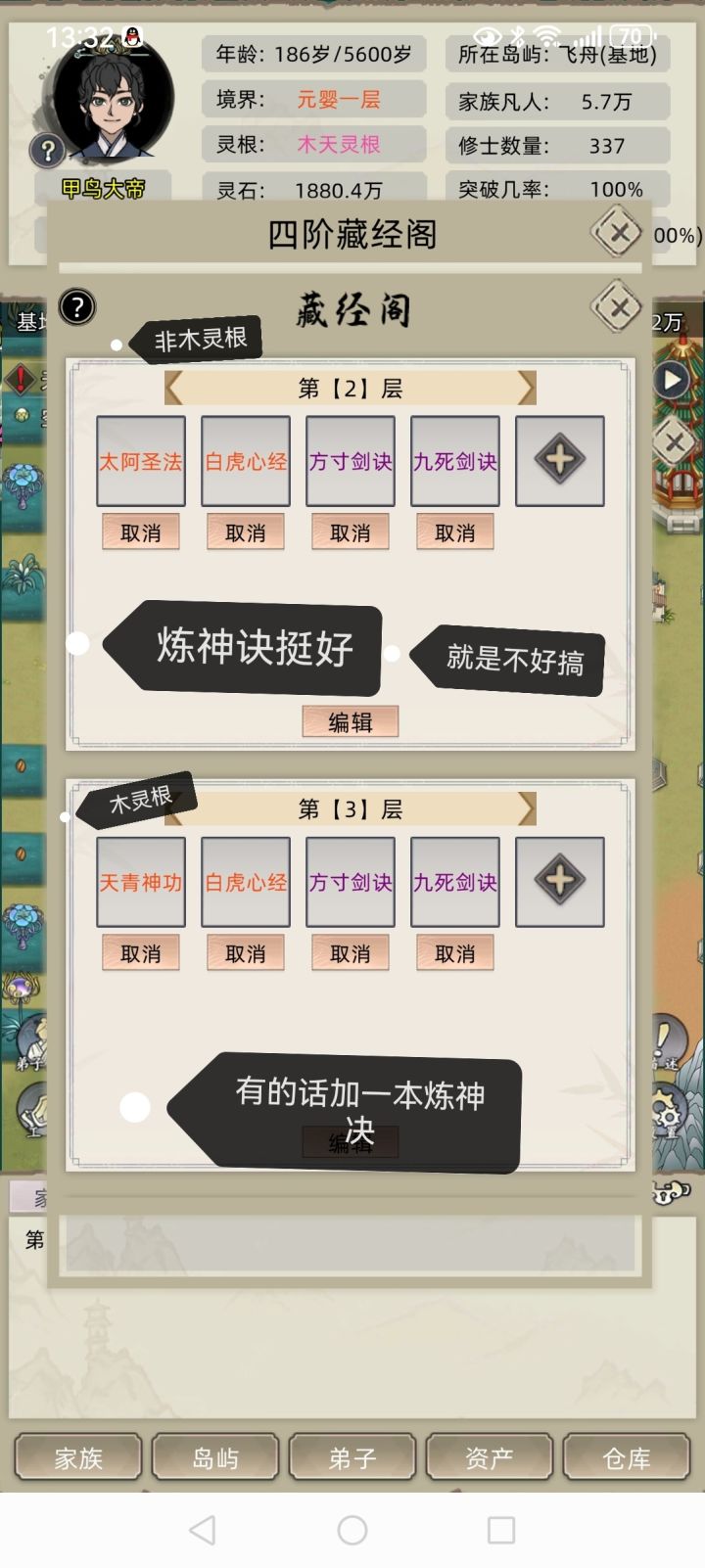 第一层,放龙蟒吞天功,圆满减丹毒配合吃丹,可以让低资体验天骄修炼速度。龙蟒神通也能让你轻松打赢练气筑基比赛。第二层,设定紫府五层学习,放朱雀,朱雀神通紫府期断档强,足够帮你打赢比赛和天劫,其实低资白板也能打赢天劫多个保险神丹通灵决(毕竟是唯一加修炼速度的辅修,虽说加的不多)第三层,金丹主修太阿,加的法力上限能有效增加你的三关突破。(朱雀学不圆满会直接被太阿顶掉,朱雀紫府很强金丹很拉