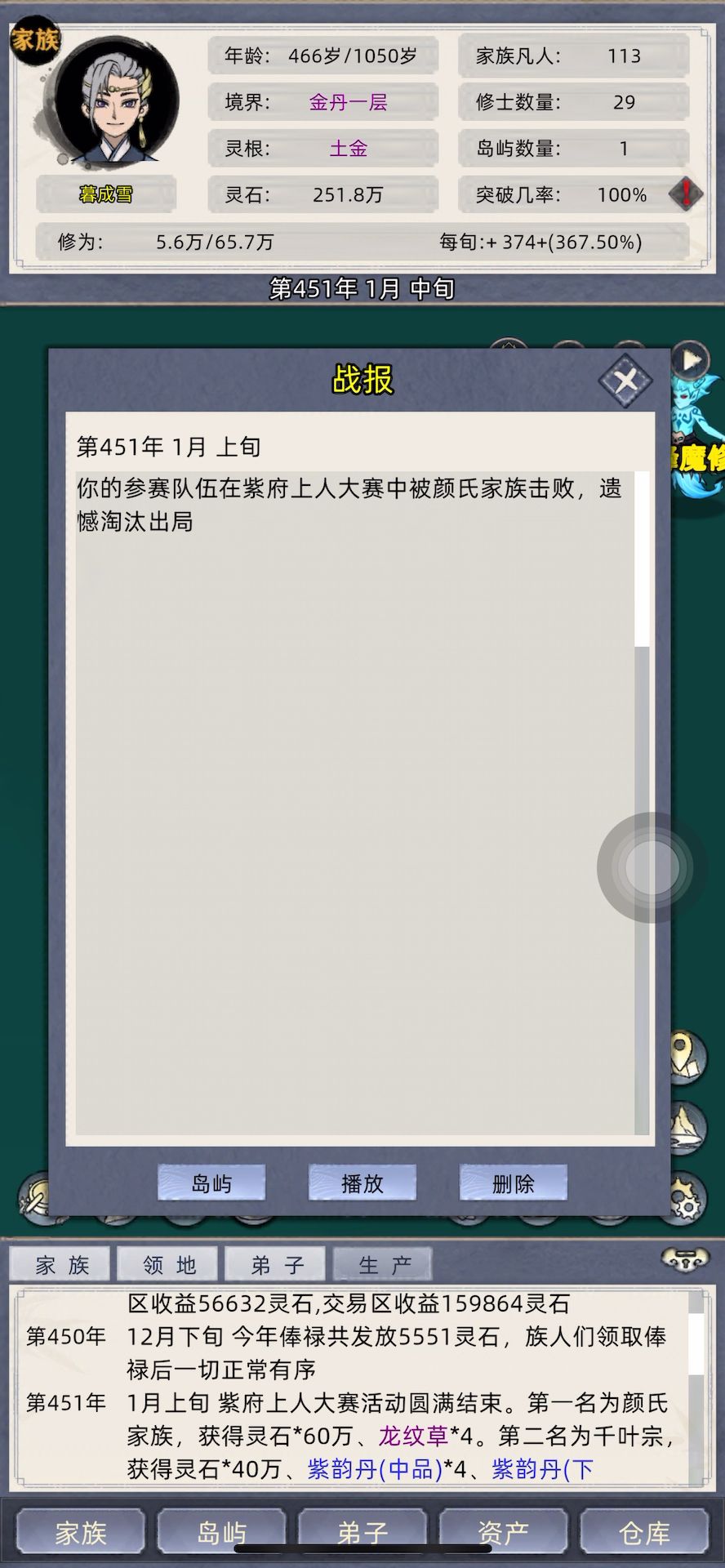战斗系统有bug,不管打什么境界的人都会被莫名其妙的伤害整暴毙#修仙家族模拟器