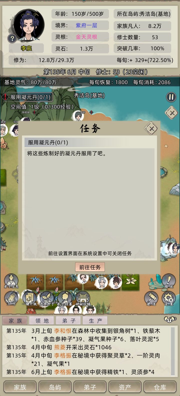 不用跟着任务走,点击任务要的单给对应境界的人吃就行了