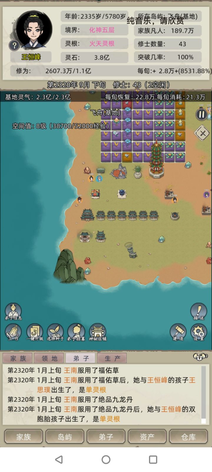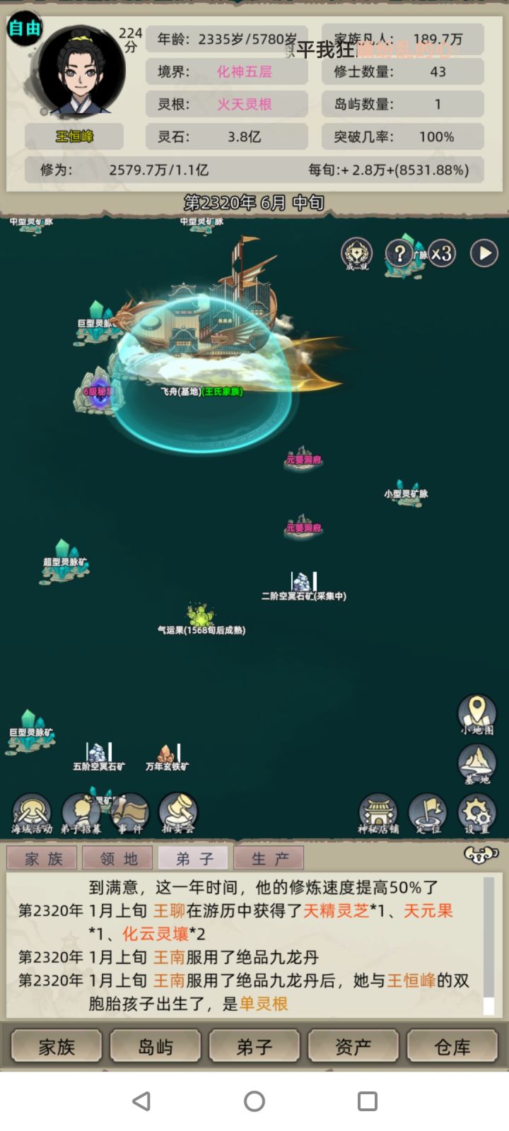 开局一定要选船,到处开然后派弟子去挖灵植,打不过没关系有时候碰不到妖兽,一直sl就行#修仙家族模拟器 主要挖加修为和七层以下直接突破的灵植