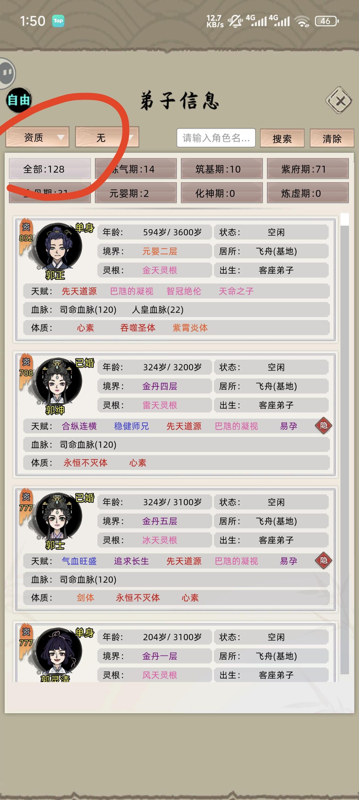 明明有200个人,但是弟子列表里面显示不全,可以通过人际关系能找到不显示的弟子,还在家族内没离开过,这个怎么显示全?