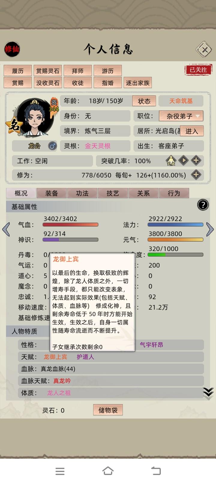 众所周知(之前论坛有人发过)变异血脉的属性效果取决于修士面板属性的占比。举个栗子:就是物攻高的修士觉醒血脉,更容易出高物攻天赋,先手高的同上。有人集齐三名人血脉加十多个红色体质、天赋,试图用一个六边形战士觉醒一个六边形天赋。但是人不能既要又要,什么都想要的后果就是,你会得到一个平平无奇的血脉,而这个血脉,还是你数十次回溯时间所能得到的最好结果。这对战斗修士或许影响不大,但对生活职业的修士,是