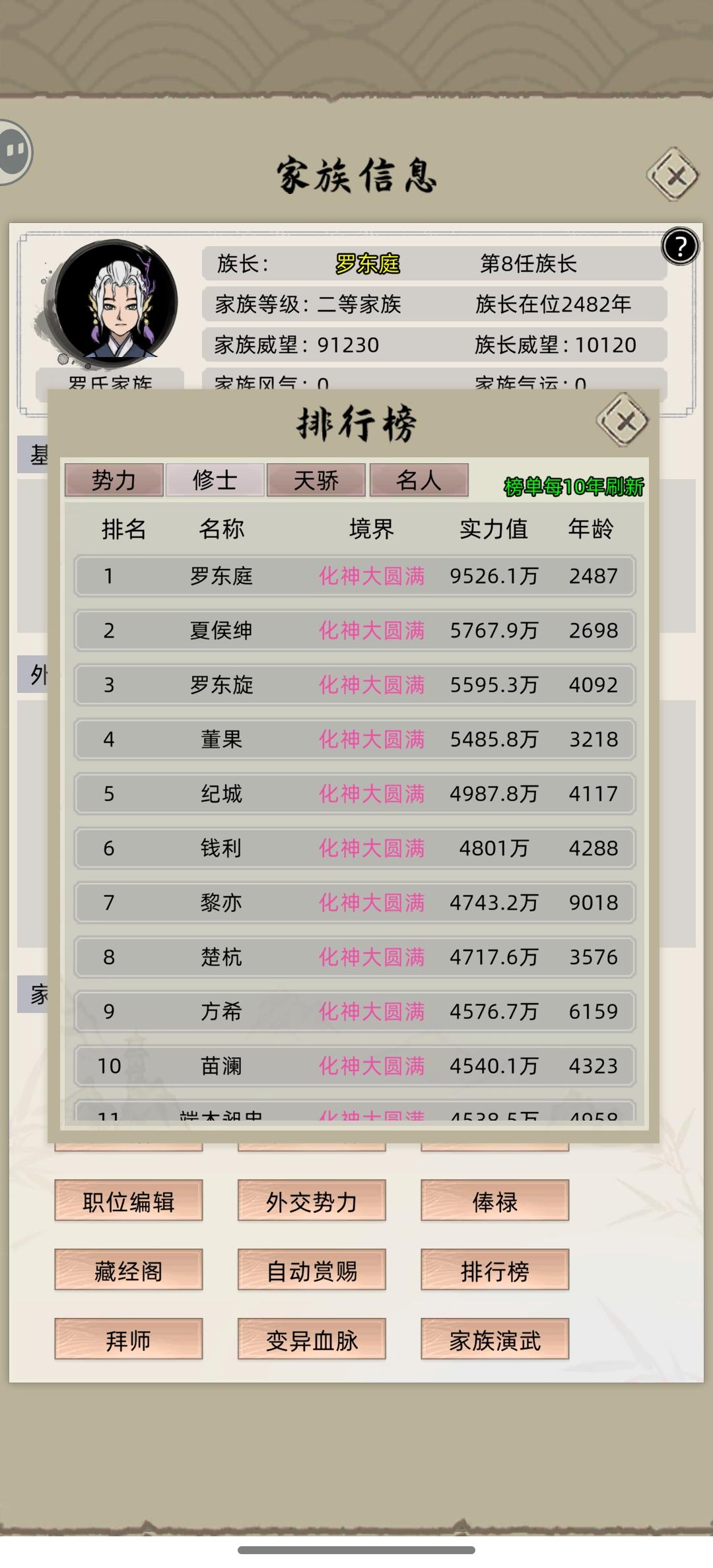 纯手动家族模式肝了一万年,差不多一亿战力,排行榜第一,为什么电脑岛上一堆炼虚期,这也打不过,那也打不过,我这边化身圆满就直接飞升了,手底下十几个化身圆满都压着不让飞升,这咋回事啊#游戏日常 #修仙家族模拟器