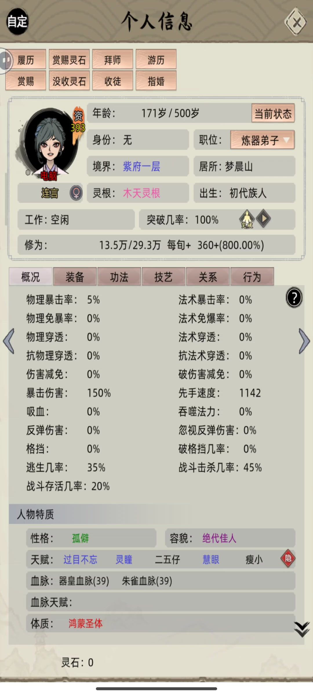 退出重新会导致主角出现bug#修仙家族模拟器