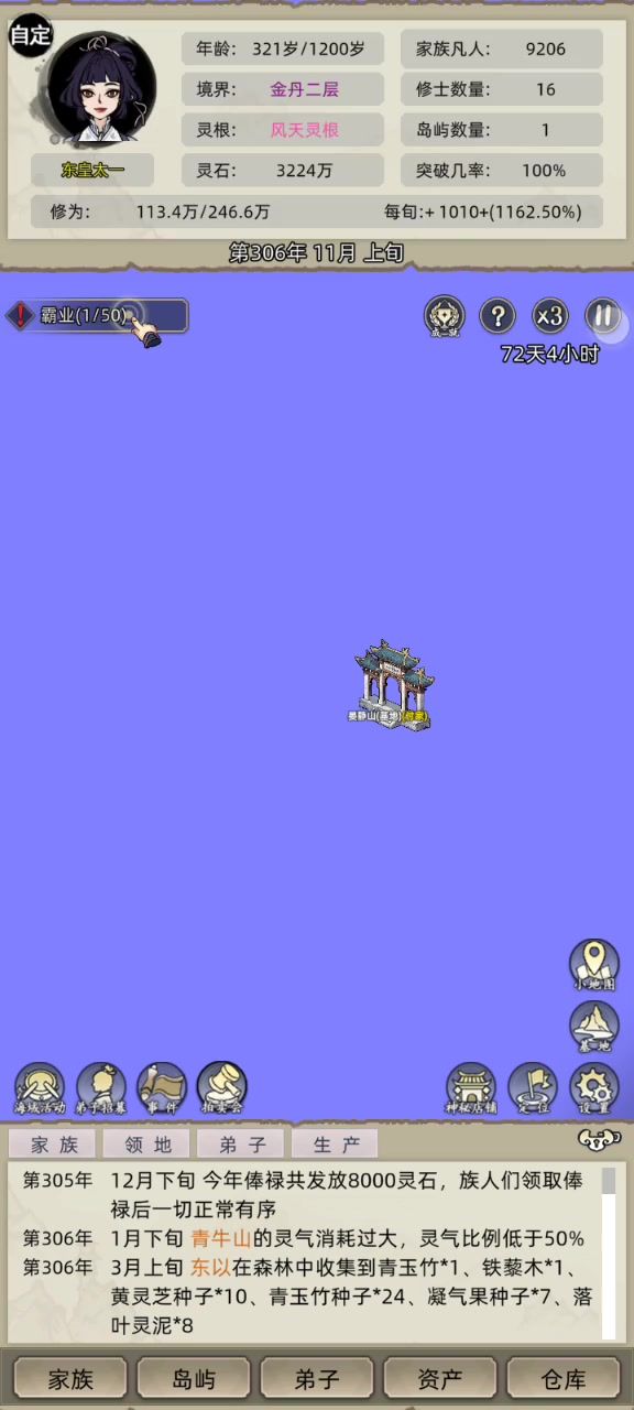 这个一攻打 就一直报错。换了几个岛屿打都一样的。这怎么玩不可能一级岛玩下去呀,空间都没有,矿也没有。#修仙家族模拟器