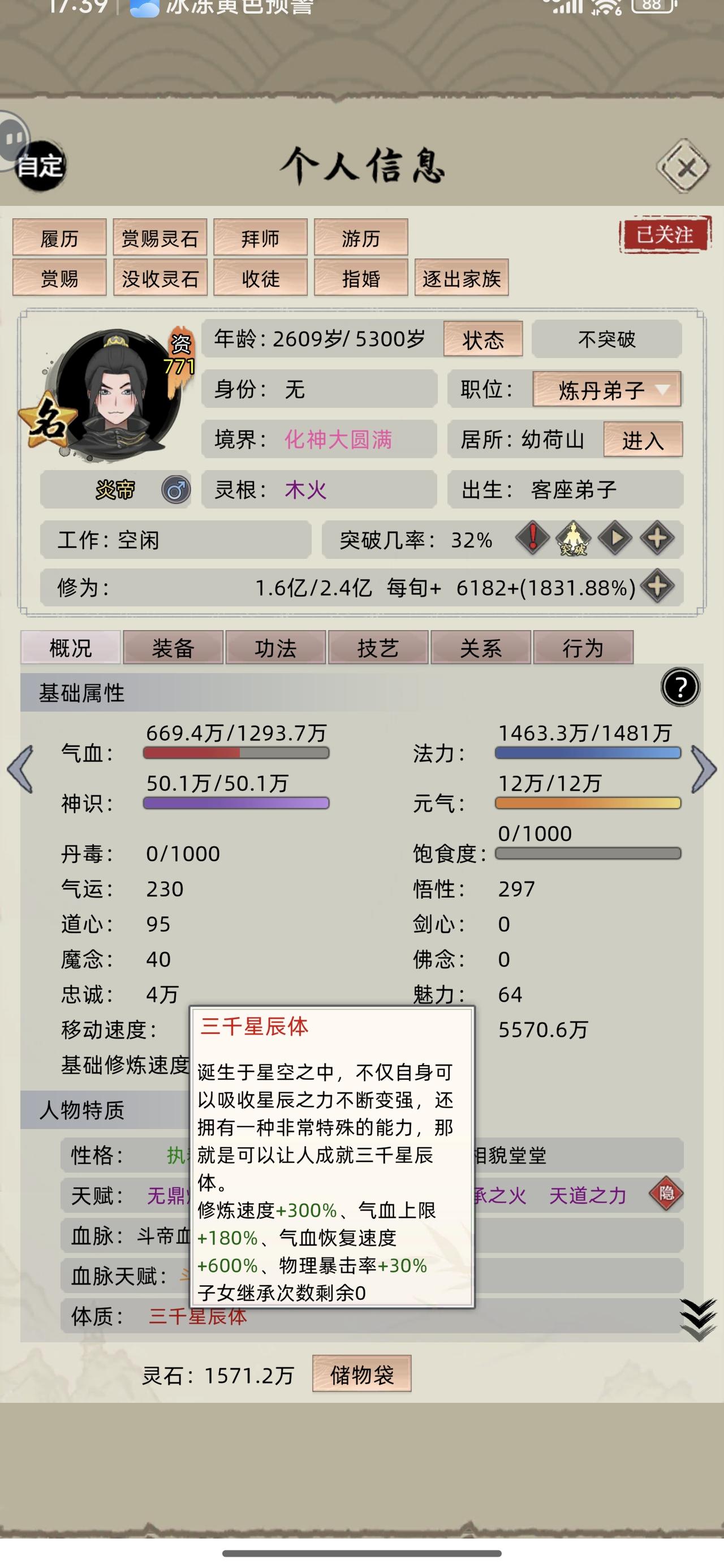 众所周知(之前论坛有人发过)变异血脉的属性效果取决于修士面板属性的占比。举个栗子:就是物攻高的修士觉醒血脉,更容易出高物攻天赋,先手高的同上。有人集齐三名人血脉加十多个红色体质、天赋,试图用一个六边形战士觉醒一个六边形天赋。但是人不能既要又要,什么都想要的后果就是,你会得到一个平平无奇的血脉,而这个血脉,还是你数十次回溯时间所能得到的最好结果。这对战斗修士或许影响不大,但对生活职业的修士,是