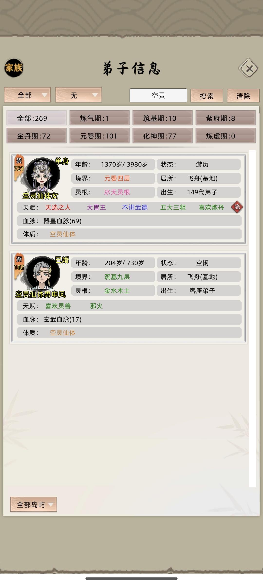 一,毕业人物成型参考模板基于第一篇的第四部分培养步骤依次进行可以培养出以上人物。二,面版重要部分培养出的人物,“命中率”“先手速度”应在此数值左右。三,功法搭配以下是部分搭配,每种灵根搭配不同,但思路相同。以上功法搭配思路为 :主修:梵圣真魔功+群伤物理主修(如时冰宝典)+先手主修自创辅修:极寒风雪功+群伤物理辅修(如开天剑诀)+爆伤辅修自创+归元剑典下部+优先群伤物理辅修/洞天剑
