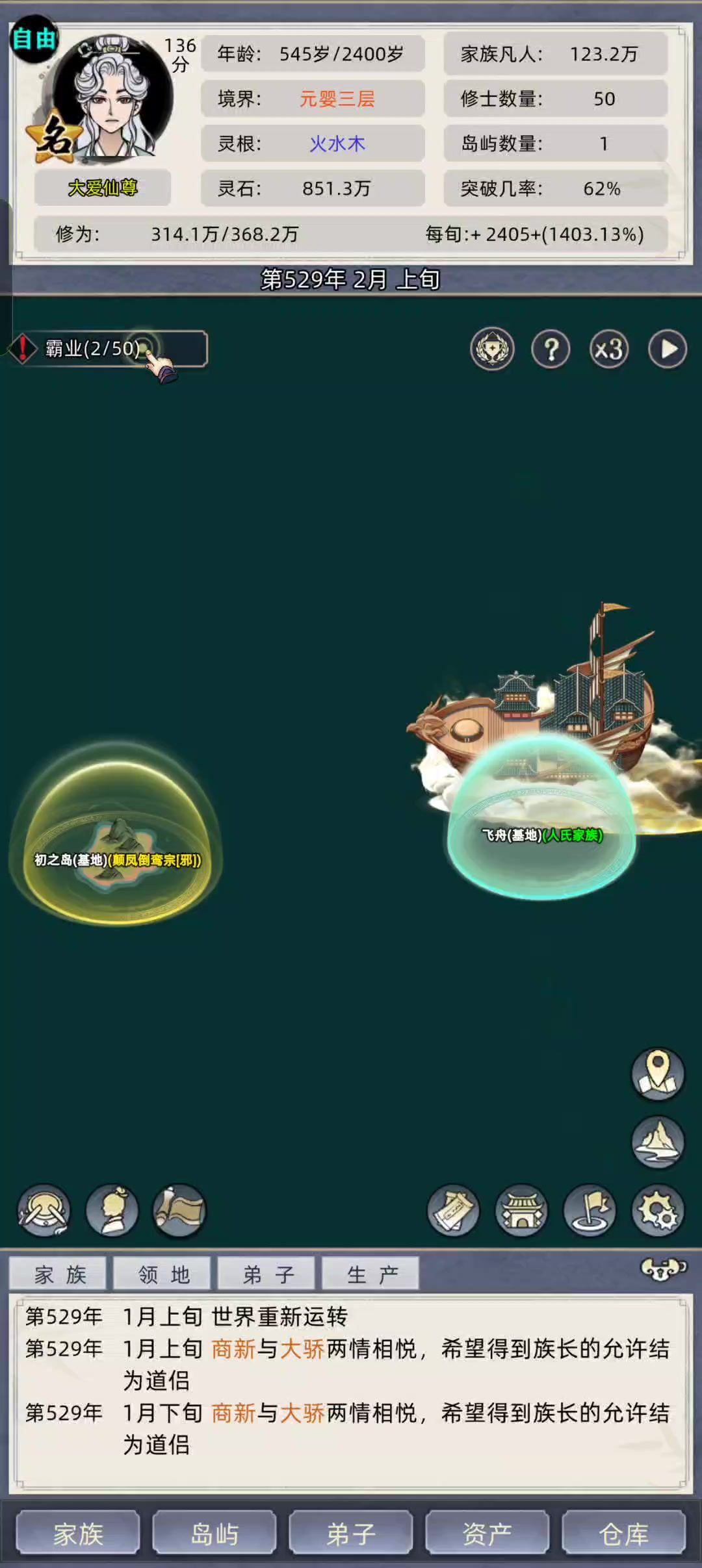 修仙家族模拟器解决吞岛后1阶2阶秘境森林一堆的办法,编号-1001