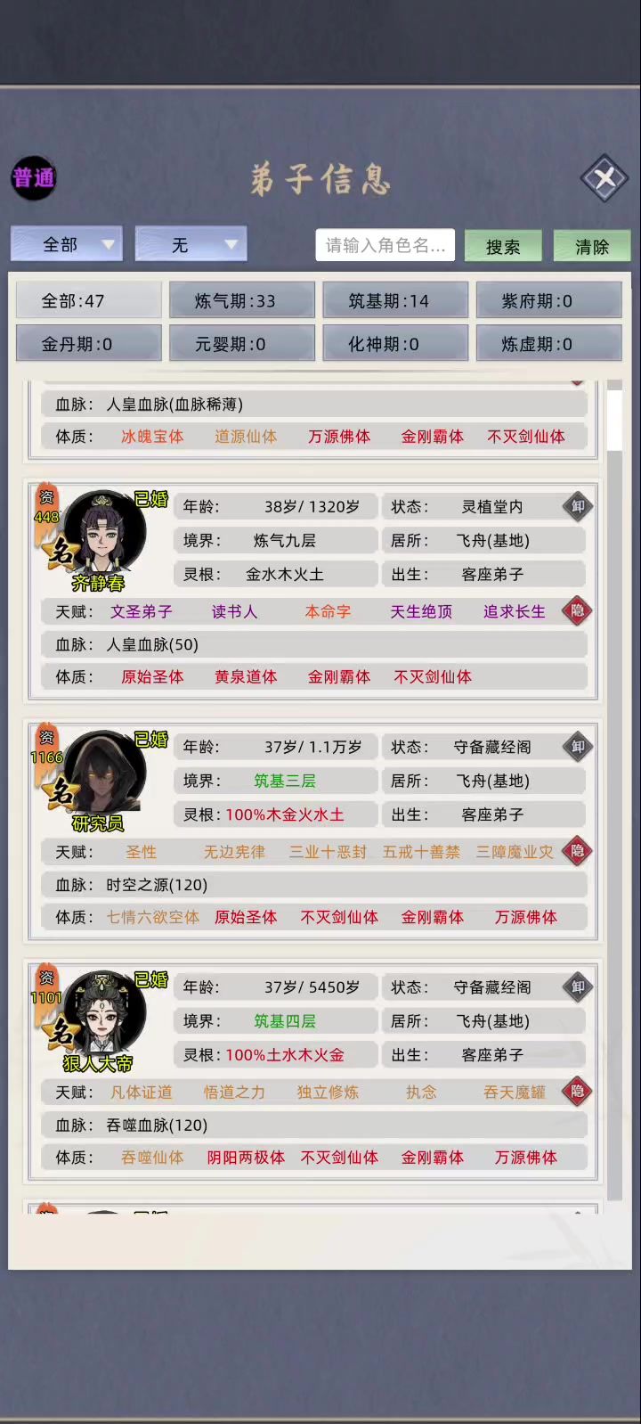我单我单单只保留360满真灵、五爪金龙血脉就有几百位。更别说我曾经舍弃了多少血脉品质不佳的弟子…… 现在现在真怀念啊。。。#修仙家族模拟器