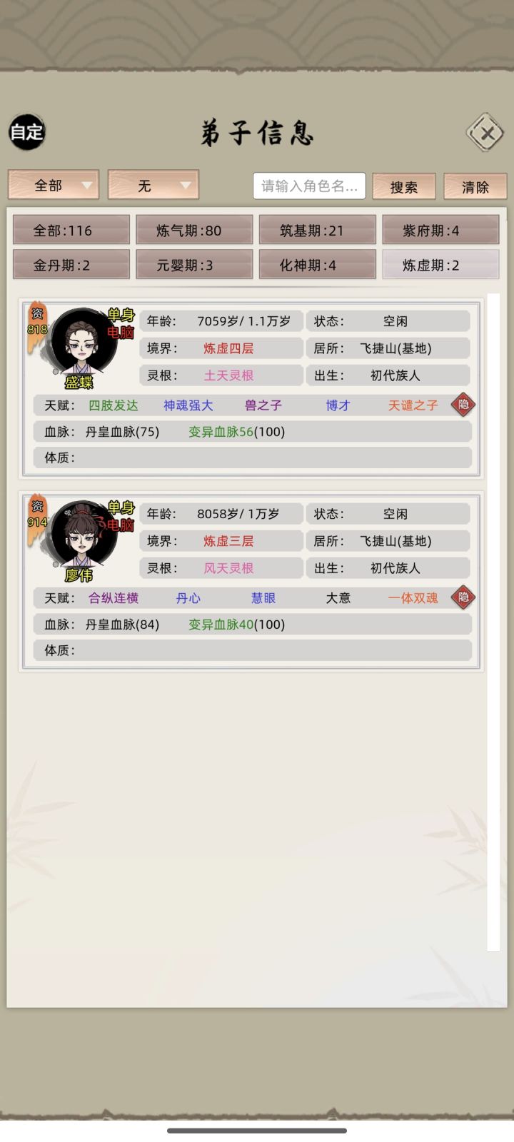 之前用虚天鼎指定孕养方向,效率实在太低了!每次60的加,岛上又有建筑数目限制,虚天鼎还只能有一个,不能同时孕养……后来发现每个岛放个虚天鼎孕灵效率居然快得多,反复计算后才发现是相互叠加计算的,可以省不少时间,这图里面几个就是指定方向孕养的仙器,还有装上仙器激发的变异血脉#修仙家族模拟器 #单机游戏