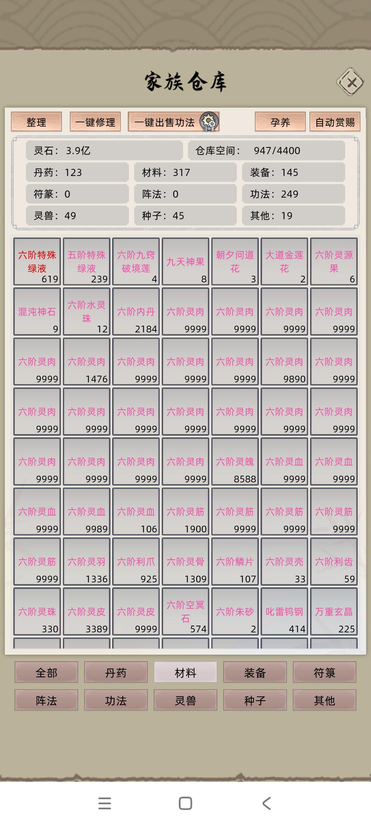 李青侯到手,血脉就收集完了,麒麟,巨魔,鲲鹏,3血脉收集完成。剩下的就是配体质了,不过也好配,毕竟全部名人都抓过来了。这个档很顺利,开局遇到朝夕问道花,直接老祖化神2了,100多年把全部名人都抓过来了。要不是升级升仙台没材料(拿仙道升仙令),耽误点时间,早配好了。算是最顺利的一个档。