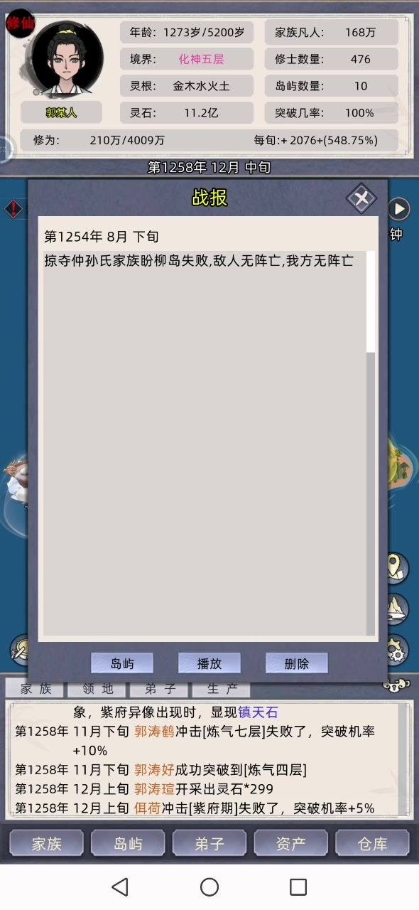 #修仙家族模拟器 灵液有bug 点着点着库存几百个就没了