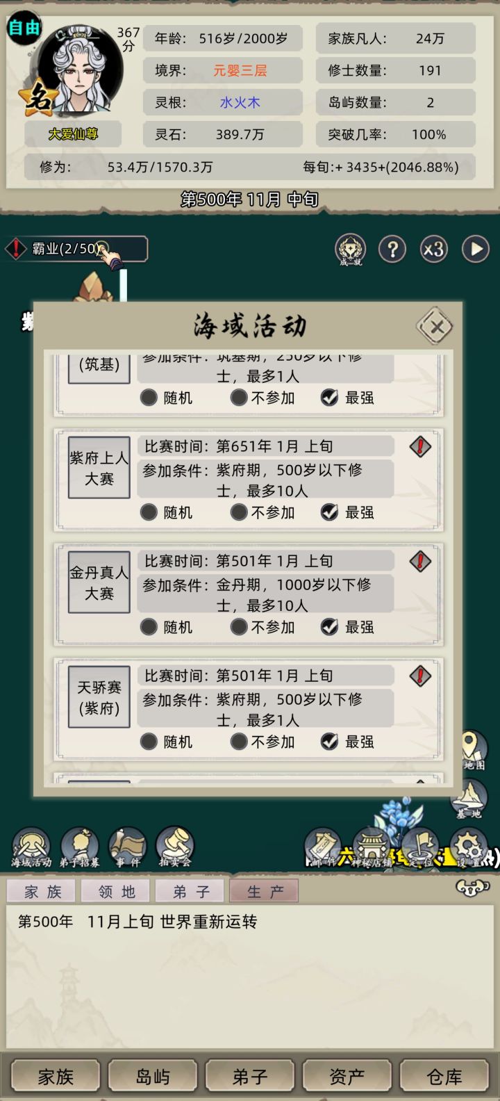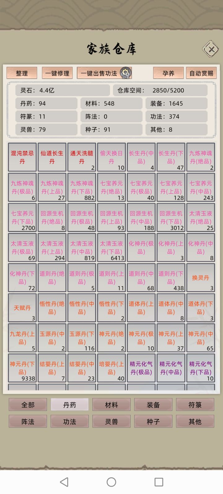 新年活动虽然真灵有点差强人意,但是游历事件奖励还是不错的,目前已经刷出来了道体丹绝品(额外补充一下,所有道具都在弟子背包里面,这些丹药啥的多注意,不然会自动用掉)