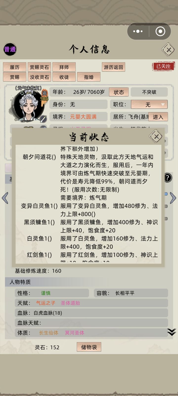 水灵稻每旬➕5,5✘36=180,一年36,喂丹给鱼的话算10年就是360,那练气一层赏个400够他吃完练气了水灵鱼60 60✘36=2160一年(大概)有上限聚灵丹中品是262颗,感觉给个100-150之间差不多了然后练气三层给凝气果和破界丹同理六层,九层在给一次。在不能筑基,活该它老死。超过60岁单灵根都不能筑基,更别说五灵根。试了下喂绝品筑基丹都不行。那么开局想吃那么多丹,还是得