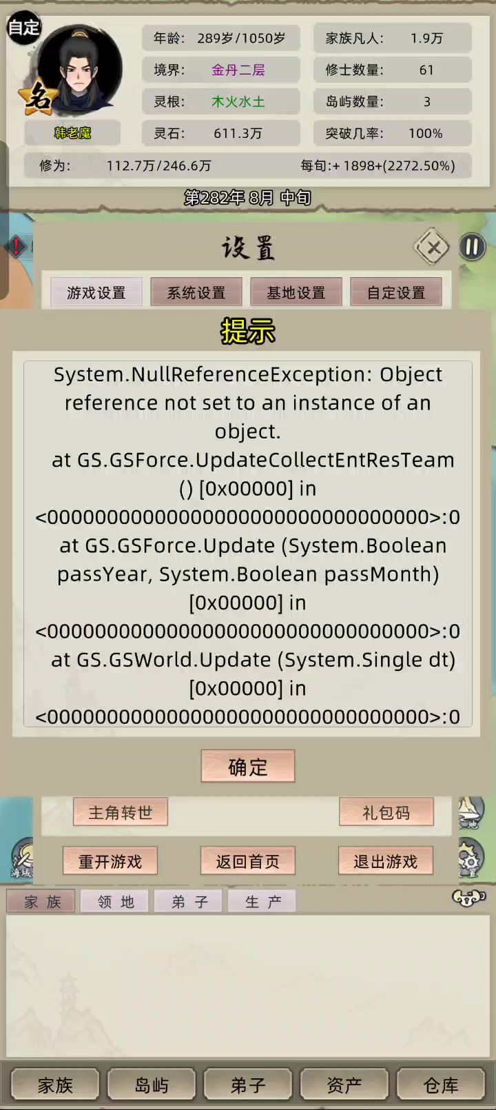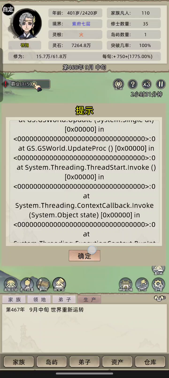 老祖转世一直是bug,点都点不掉 啥时候才修复掉啊#修仙家族模拟器