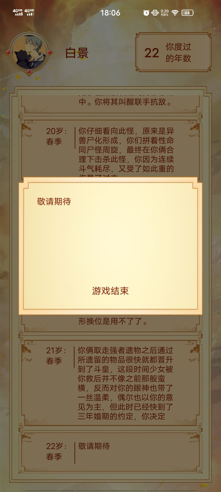 炎帝刚通,给大家说下会遇到的问题,就是第五章怎么选都没过,是因为第三章末尾你炼药大赛没有夺冠获得精神功法,重新过第三章就可以了😁,我遇到的问题是第六章必须不交玉佩才能过,不知道是不是剧情需要
