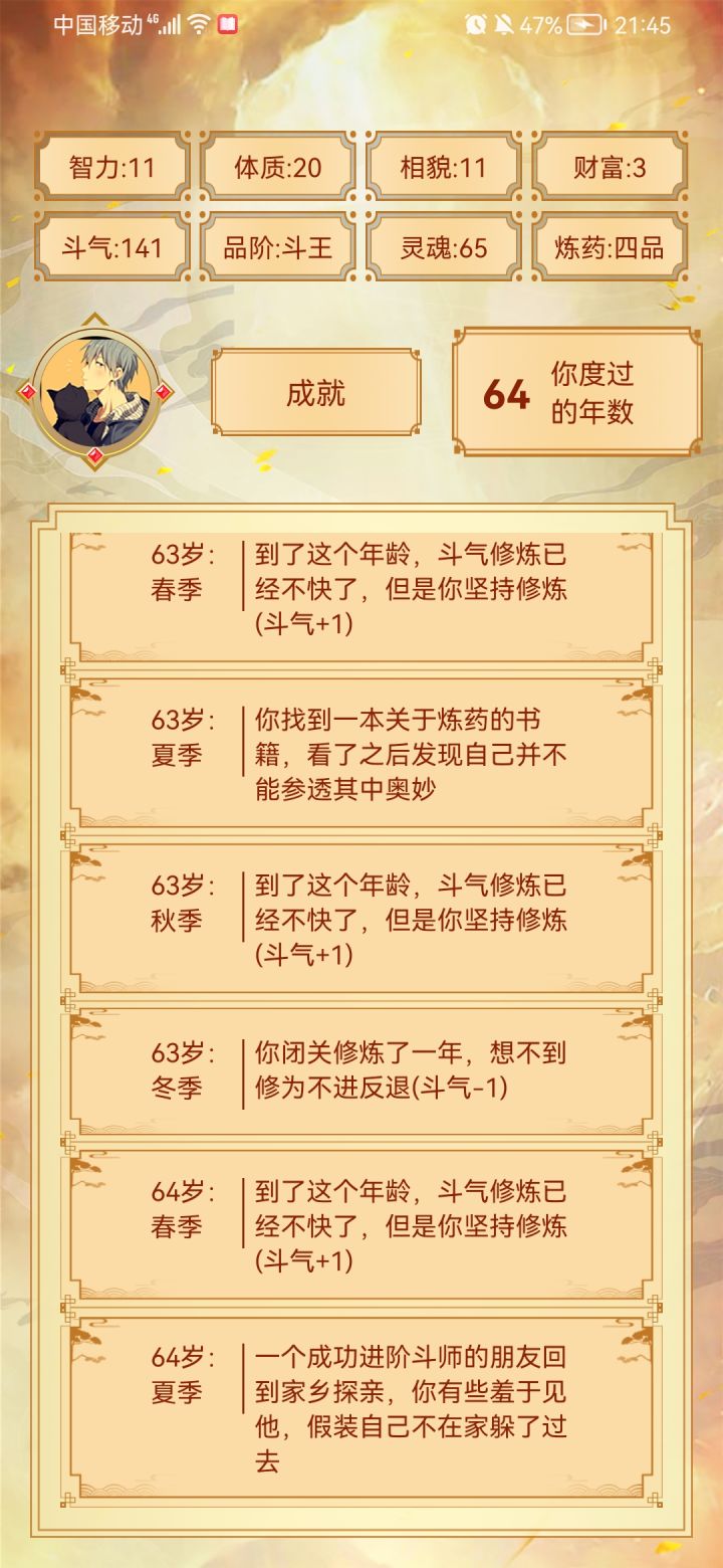 首先说明几点问题:1.主角模式的卡关很严重,下次会加入提示。小服务器加载的人多了,导致很一些事件无法正常弹出。已经在想办法解决了。2.随机模式上线是群里反馈还可以,我就先上了,现在的事件大概是700条左右,我尽量保持一天200的事件更新,最快达到2000条事件。3.我发挥了我的想象力加入了宗主退婚的事件和小镇爱情故事,可能写的不够好,大家有意见在下面直接提出4.如果你真的觉得不满意,我会尽
