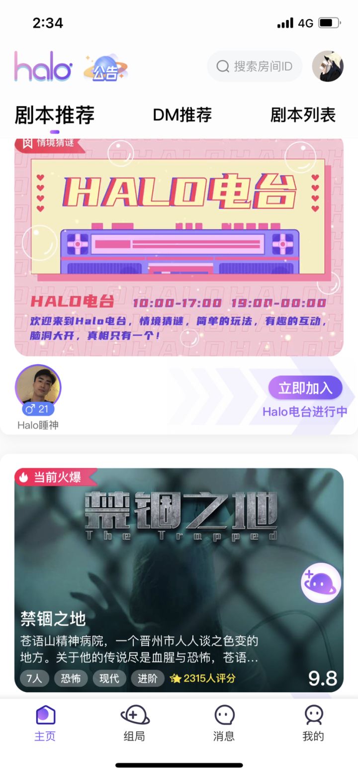 【自我介绍】Halo~各位小伙伴~欢迎来到Halo剧本杀APP!没错~我们是用心做线上的专业剧本杀APP!我们有专业的DM在线带本。我们有大量获得正版授权的火爆剧本。在Halo,玩家们凭声相识,因剧相知,结识同好。