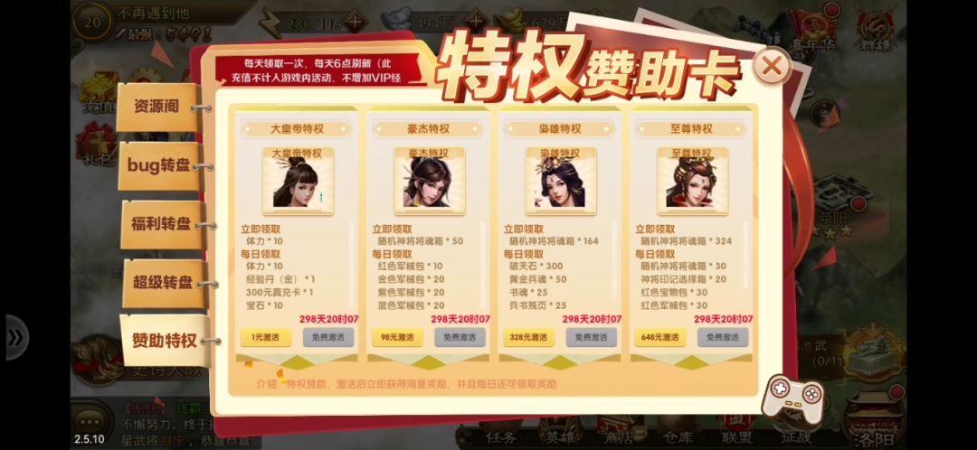 大皇帝手游这款经典的老游戏,不知道承载着多少人一统三国的梦想,就在12月24日它终于又回来了,这次我们不仅回来了,还给大家带来了大量的福利。1. 送50万真充,全部无门槛使用,全部激活VIP,全部激活运营活动,全部激活累充活动,全部激活单充活动,全部免费领取!!!2. 上线直接领取20000元真充卡,使用后直升VIP12,12档VIP奖励,20000档累充奖励,直接领取!3. 充值比例1:5