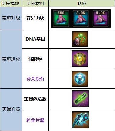 1、开启条件 首次唤醒源神需要等待24小时,指挥官们也可购买18R-快速激活礼包,先人一步开启源神同时,礼包附加变异肉块5k*2+源神DNA*5+储能罐*5+生物改造液*5,也可以提前进行培养。 2、养成模块 泰坦养成目前分为四个部分:泰坦升级、泰坦进化、泰坦天赋升级、泰坦皮肤 泰坦升级最高可达到40级,达到对应等级后可开启对应的阶段。 泰坦进化分为4个阶段:巨兽级-灾难级-毁灭级-末世级;每次进