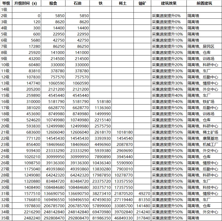 好久不见,甚是想念 今天给大家带来的攻略是纯纯的干货喔! 下边就给大家带来建筑资源消耗表第一波,城堡主建筑,主城堡和隔离墙的资源消耗资料~ 主城堡 隔离墙