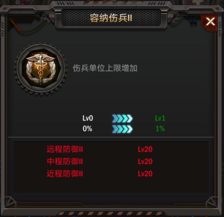一、车厂科技车厂科技中,【救援】每升1级增加1%的伤兵转换率(该技能最高10级,可增加战斗伤兵转化比例10%)二、科研中心【发展】中的【急救术I】和【急救术II】每升1级增加1%的伤兵转换率(两个科研最高5级,一共10级,即在科研中心,战斗中死亡士兵转化伤兵比例最高可增加10%)三、副官技能战略型副官可以学习【急救术】,根据急救术的等级和副官的能力值来提升比例(最高可增加20.4%)