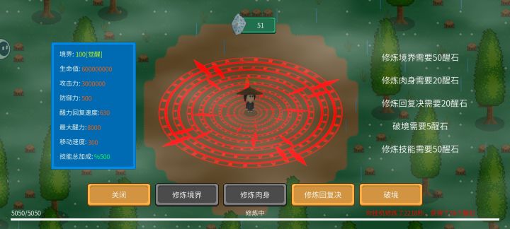 技能试了一下,感觉还行就万剑和藤蔓还可以,打到后面单纯跑着用技能去耗,要么就升境界去硬a,肉体的加成太低,完全不如境界而且境界还加血加蓝