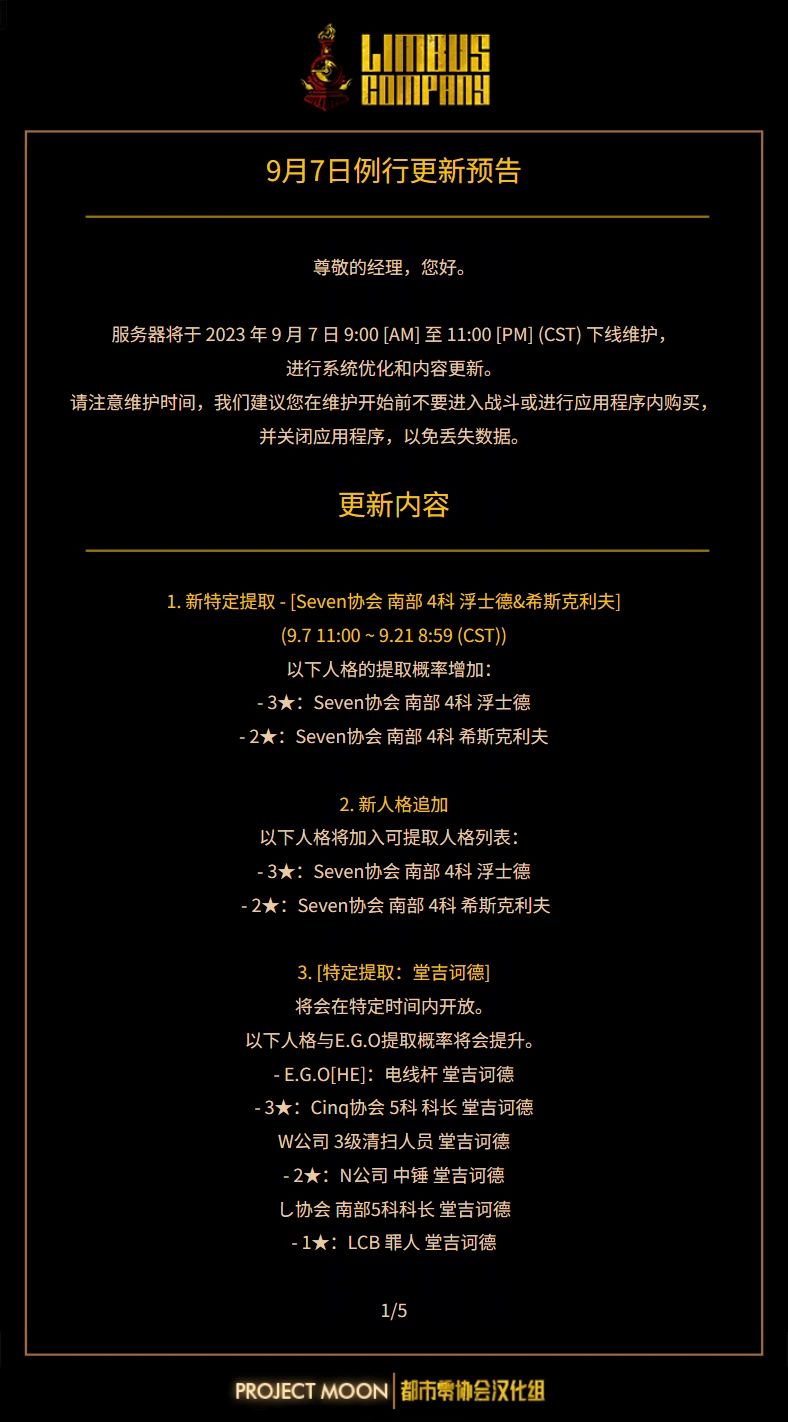 九月七日预定更新通知