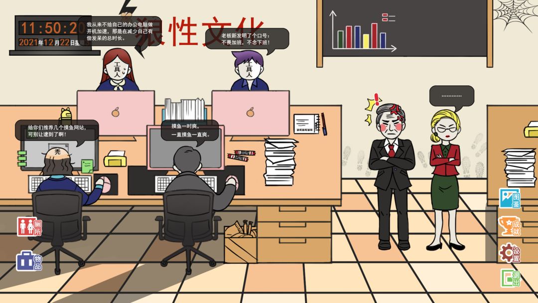 活下去!活下去!活下去!在996式的工作环境中,既要不断摸鱼,又要不断进步,从实习生,爬上公司最高层!是被压力击倒,忍饥挨饿,猝死当场,还是工资节节高,事业有成,有房有车,就取决于你……的反应能力了!