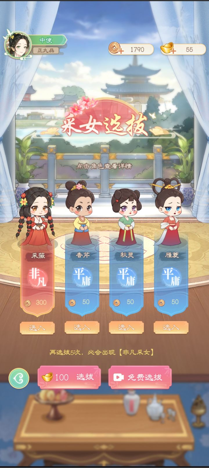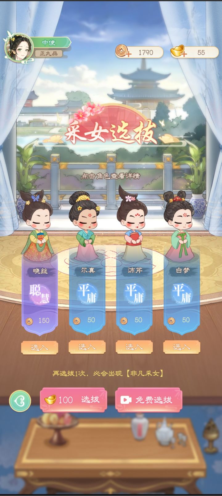 各位女官大人久等了,再次感谢大家的热情体验,新的玩法开发已接近尾声,即将与大家见面了,这次我们在唐宫中开办了太学院,有各种厉害的学问大家前来授课,大人们可以让你的宫女前去学习,成为学霸和技术大牛,更快的协助各位获得财富与声望!!!另外,我们还在继续补全与丰富更多的剧情玩法,也期待大家前往探索!(重要:继续为我们的能力不足而造成的各种BUG和差体验道歉,我们将不懈修改与完善!请多包涵!)
