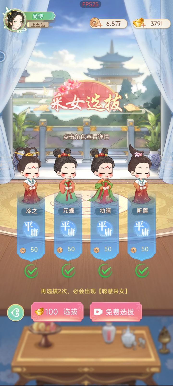 各位女官大人久等了,再次感谢大家的热情体验,新的玩法开发已接近尾声,即将与大家见面了,这次我们在唐宫中开办了太学院,有各种厉害的学问大家前来授课,大人们可以让你的宫女前去学习,成为学霸和技术大牛,更快的协助各位获得财富与声望!!!另外,我们还在继续补全与丰富更多的剧情玩法,也期待大家前往探索!(重要:继续为我们的能力不足而造成的各种BUG和差体验道歉,我们将不懈修改与完善!请多包涵!)