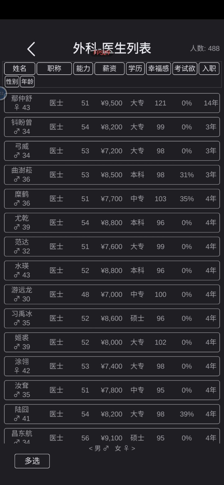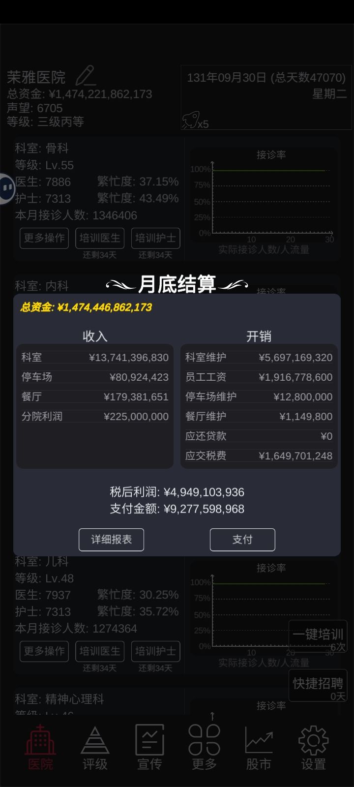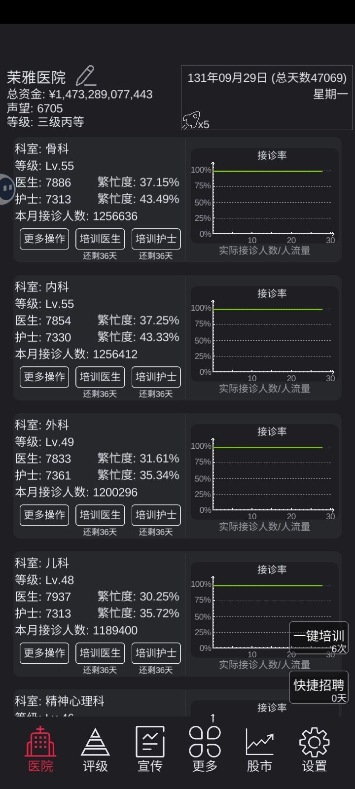肝没了,分院懒的开了,没啥用。前期我也不会玩瞎搞,后来才发现考试欲是干啥的。总结一下!第一 前期先别着急培训,后期钱都花在培训上了第二 停车场,餐厅,股票都没啥可玩性,建议留点钱干正事第三 对于广告方面,我建议加速天数的可以看看,招聘小助手可以看,每天签到奖励广告可以看,其他都没必要看第四 招聘助手前期可以点开中专和大专,后面还是关了吧,浪费培训钱,而且还不会升级到高的职位。第五 后期招聘助手就别关了,多招人,多招学历高的,后期全靠人数堆起来的第六 多攒钱,多攒钱,培训太浪费钱了
