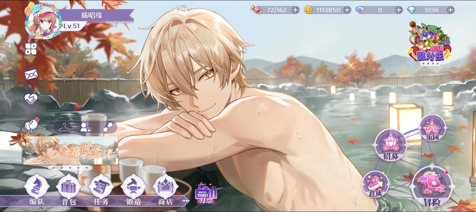其实这是我玩过最好攒钻石的游戏了,给的很多,很多。剧情什么的我也不看,直接可以跳过,主要目的就是抽卡,就这个抽卡爽啊,还是有不少好看的卡面,刚开始玩的时候还挺多事情可以干的,等到后面等级上来了,就没啥事情了,已经开始养老了(泡脚),不过这个游戏感觉没啥钱,配音什么的后面就没有了,导致主线剧情就变成了PPT,还是希望这个游戏越来越好>ᴗoಣ,还是有不少帅哥的,而且游戏也简单,打着还可以闭眼休息一会,非常适合我这种老年人