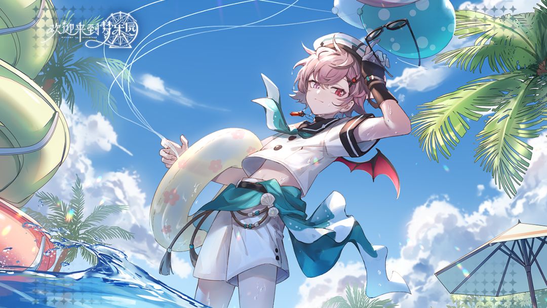 ✨10月04日,「盛夏!湛蓝海岸与水枪激战」活动即将开启! 【水枪激战·独家秘闻】 ⭐角色丨奇琪蒂 [夏日气球] “你最喜欢什么颜色的气球?那……给你这个!嘻嘻,我可没说要给你喜欢的颜色啊~” 中配CV:陆敏悦 日配CV:下野纮 —————— 如果在梦乐园夏季活动期间,看到身穿水手服的蝙蝠小男孩,不要误会,那就是我们水上乐园的经理。据说奇琪蒂为了抵抗蝙蝠的天性,在烈日下保持活力,每天都会偷偷喝特制