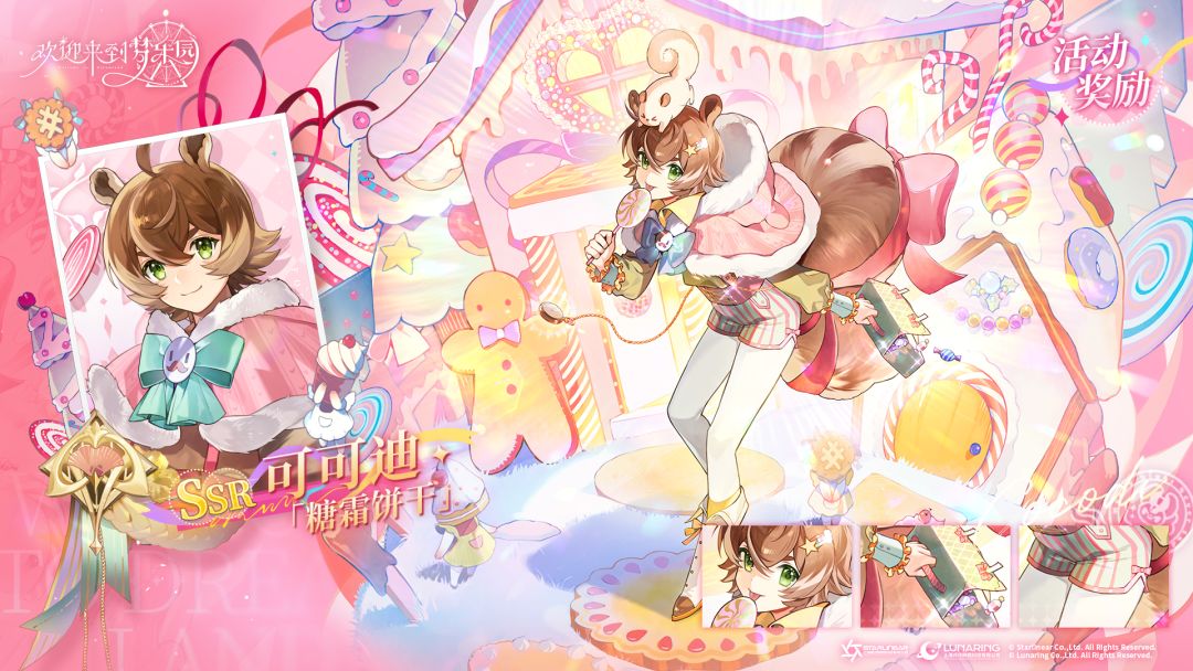 ✨10月18日,「特别邀约」活动即将开启! 【梦乐园·独家秘闻】 ⭐角色丨可可迪 [糖霜饼干] “没有什么烦恼是一份甜点不能解决的,如果有,就吃两份!” 中配CV:诺亚 日配CV:藤村花音 —————— 糖果与饼干散发着浓郁的香甜气息,活泼好动的小松鼠拎着小包在糖果屋中四处穿行。这不是童话里面才会出现的场景吗?做好准备吧……小松鼠已经捧着糖果与饼干朝你奔来啦!要好好享受甜蜜下午茶时间哦? ——欢迎