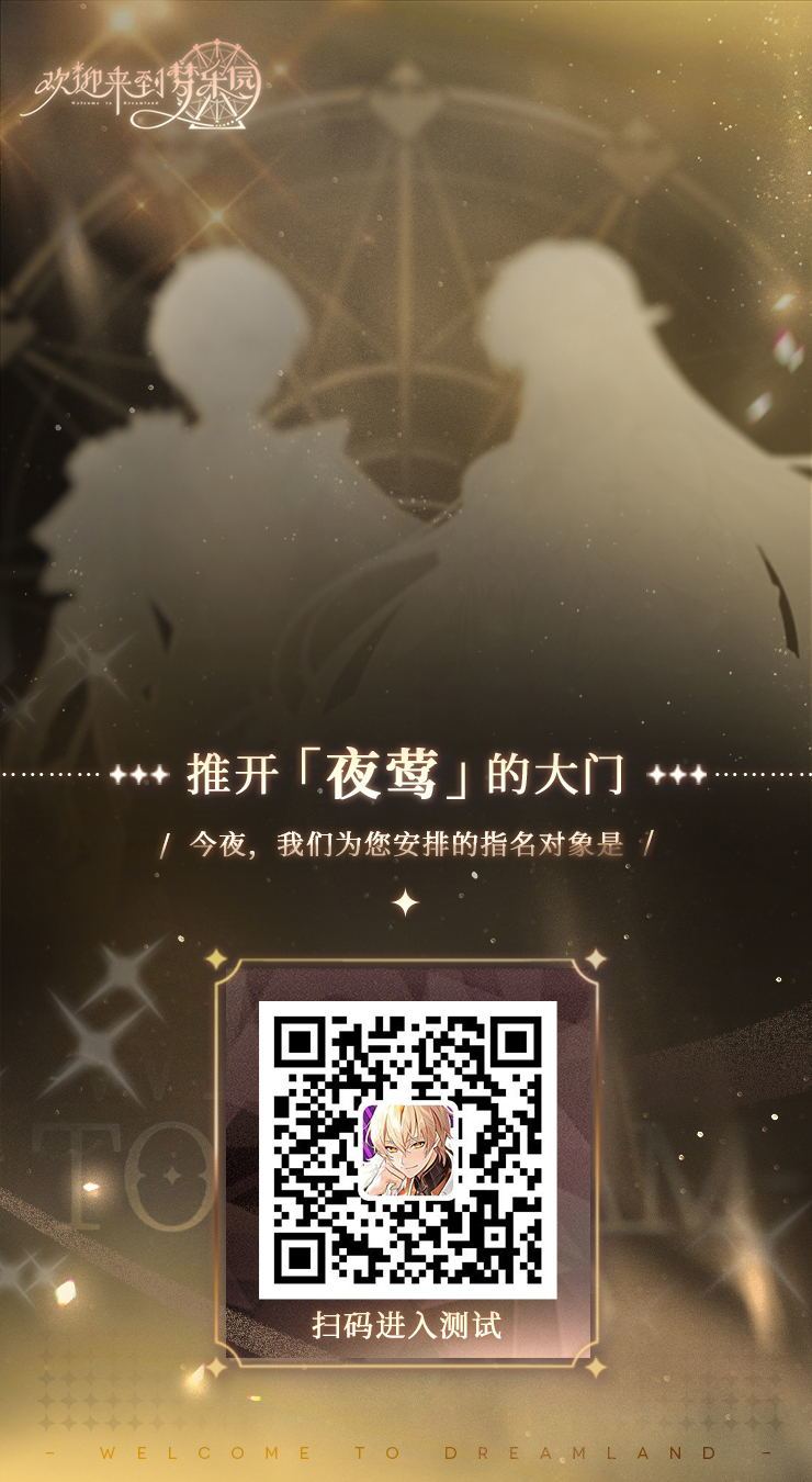 推开「夜莺」的大门,今夜,我们为您安排的指名对象将会是—— ▎公测5天倒计时·H5小游戏上线: 来到「夜莺」,您期望遇见什么样的人?温柔还是冷峻?青涩还是成熟?请给出您的选择,我们将根据您的喜好,为您安排专属的TA!快来点击链接或扫描二维码参与活动吧! ——欢迎来到梦乐园,愉快的时光永不结束! ⭐《欢迎来到梦乐园》✨女性向丨轻喜剧丨异界冒险手游 ▶▶立即预约◀◀ TapTap: