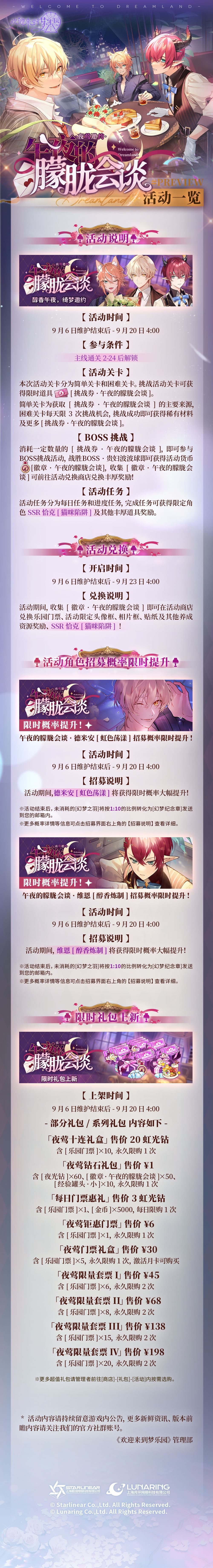 乐园布告栏丨限时主题活动-「夜莺邀约·午夜的朦胧会谈」活动一览